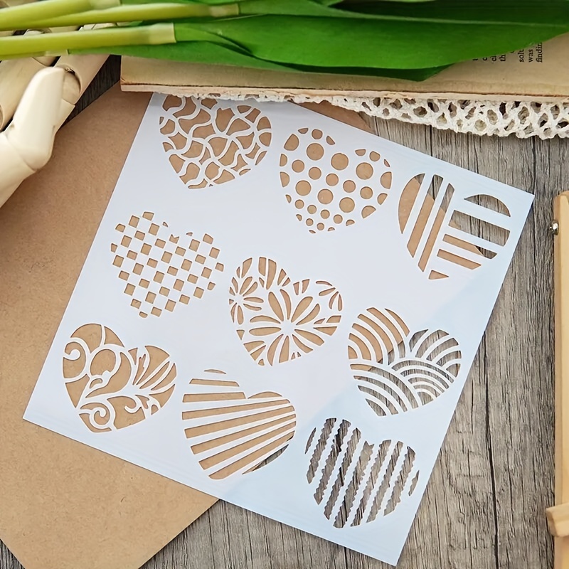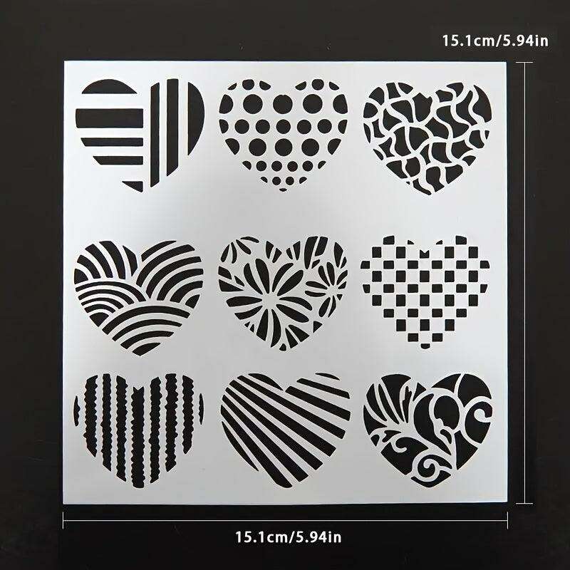 Add a touch of love and creativity to your projects with our Charming Heart Pattern Stencils. Featuring a delightful nine-grid design, these stencils are perfect for a variety of creative pursuits, from scrapbooking to mural decoration.