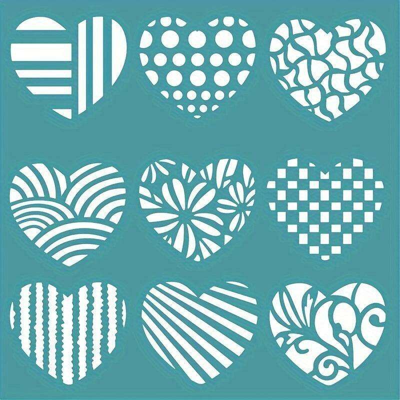 Delightful Mini Heart Stencil Set - Nine Grid Designs for Creative Scrapbooking and DIY Projects