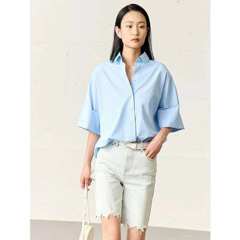 AMII Chic Oversized Cotton Blouse for Women - 2024 Summer Collection in 4 Elegant Colors