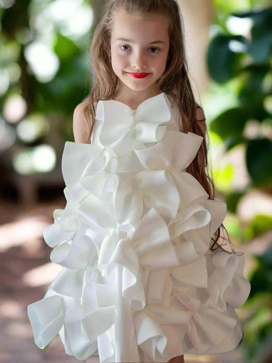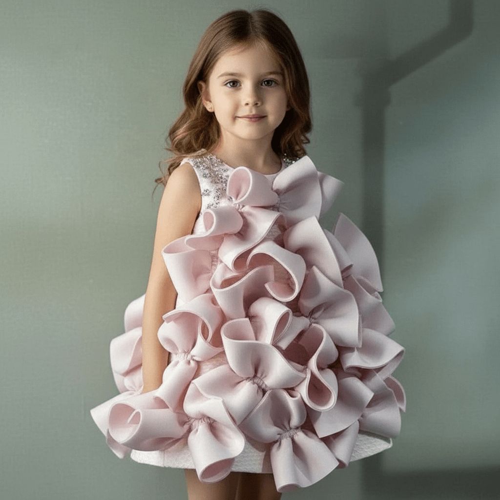 Eid Celebration Luxury One-Piece Dress for Young Girls - Elegant Birthday Party Outfit