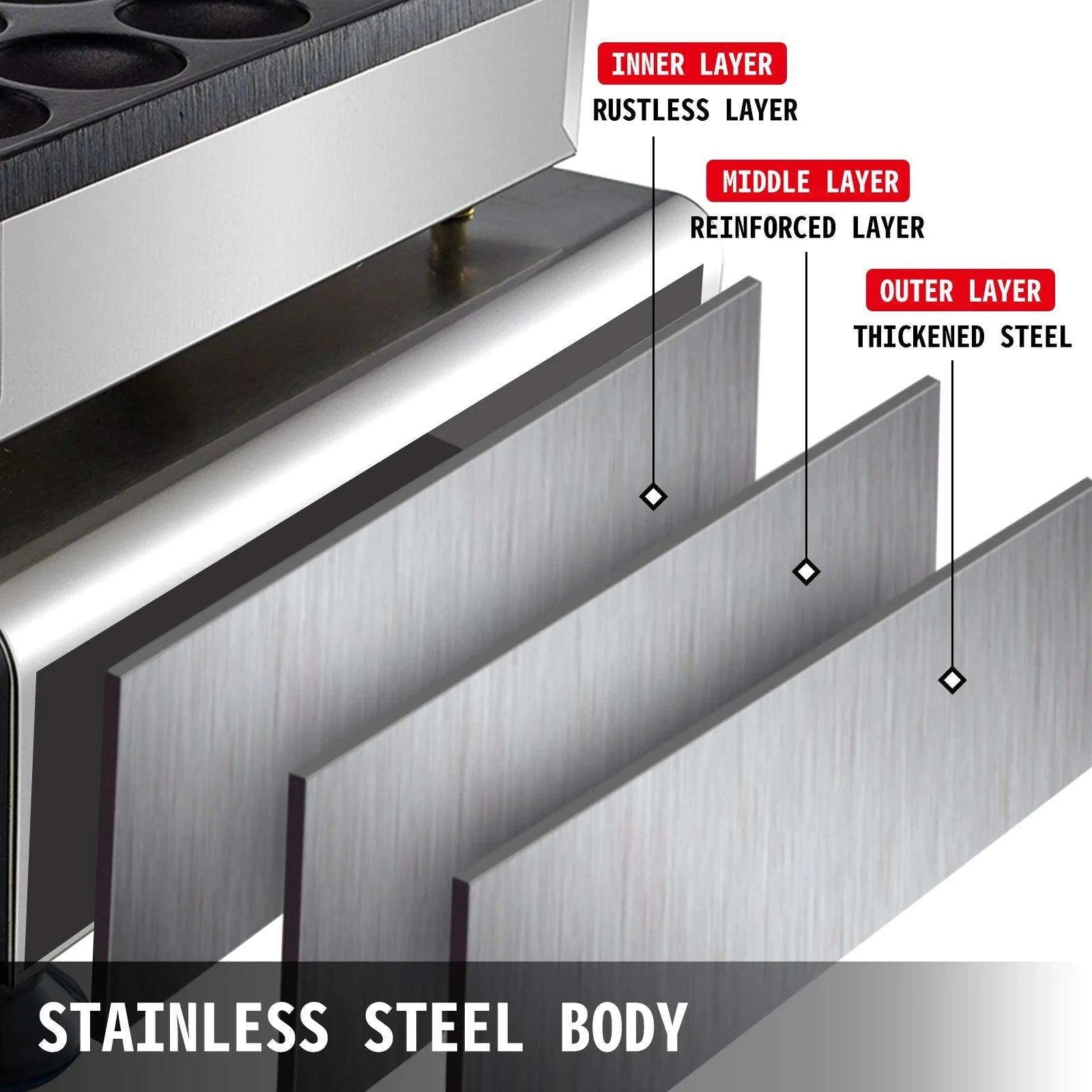 - Stainless Steel Body: Crafted from premium thickened stainless steel, this pancake maker is built to last while ensuring easy cleaning.