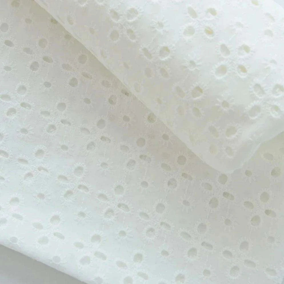 Transform your sewing projects into stunning masterpieces with our Luxurious 100% Cotton White Lace Fabric. Designed for those who value both quality and beauty, this premium lace fabric is the ideal choice for a wide array of garments, including dresses, skirts, and costumes.