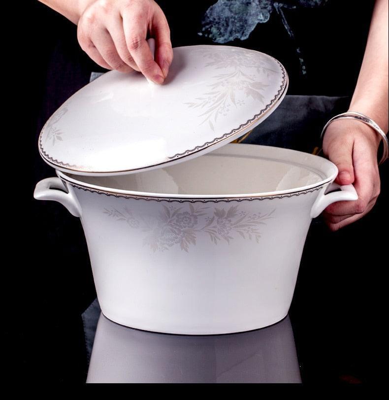 Elegant 60-Piece Fine China Dinnerware Set with Timeless Glaze and Impeccable Craftsmanship