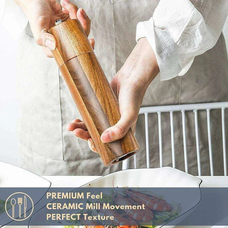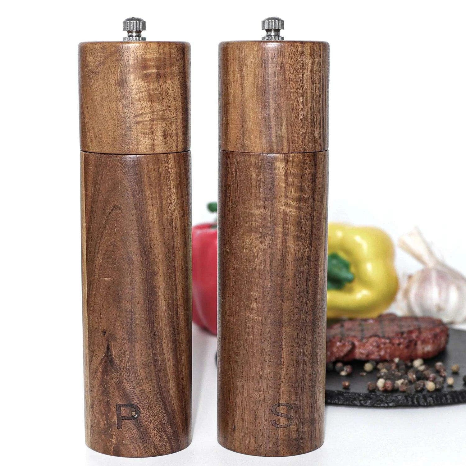 Elegant Acacia Wood Spice Grinder Duo - Premium Culinary Seasoning Mill
