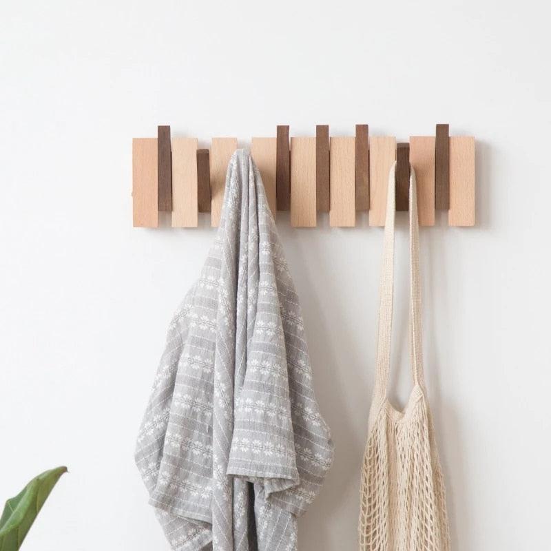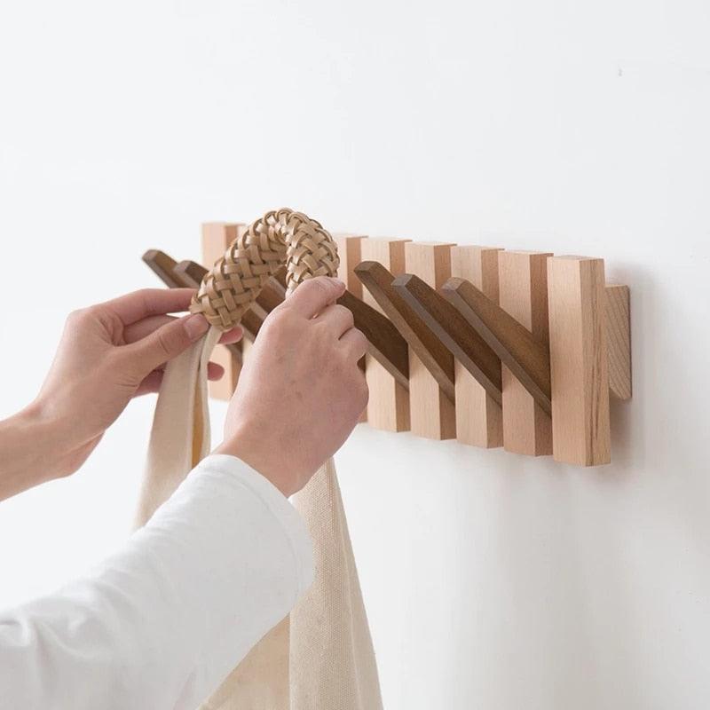 Elegant Beech Wood Wall-Mounted Coat Rack with Sandalwood Accents