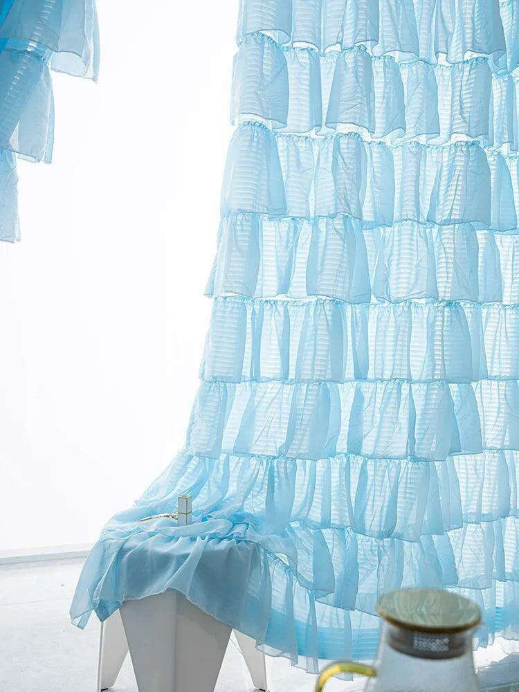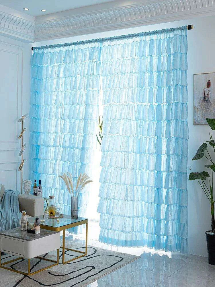 Transform your space into a stylish haven with our Chic Blue Layered Ruffle Curtains. Perfect for both living rooms and girls' bedrooms, these semi-blackout tulle drapes feature a delightful ruffle design that adds a touch of elegance and charm to any decor.