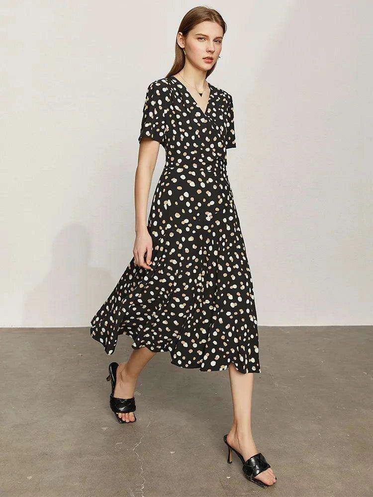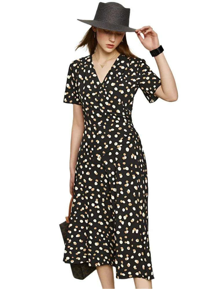 This dress is more than just a piece of clothing; it's an expression of your style and confidence. The combination of minimalism and thoughtful design ensures you'll feel fabulous while making a statement. Embrace the summer with the Chic Dot Print V-Neck Slim Fit Midi Dress and redefine your fashion game.