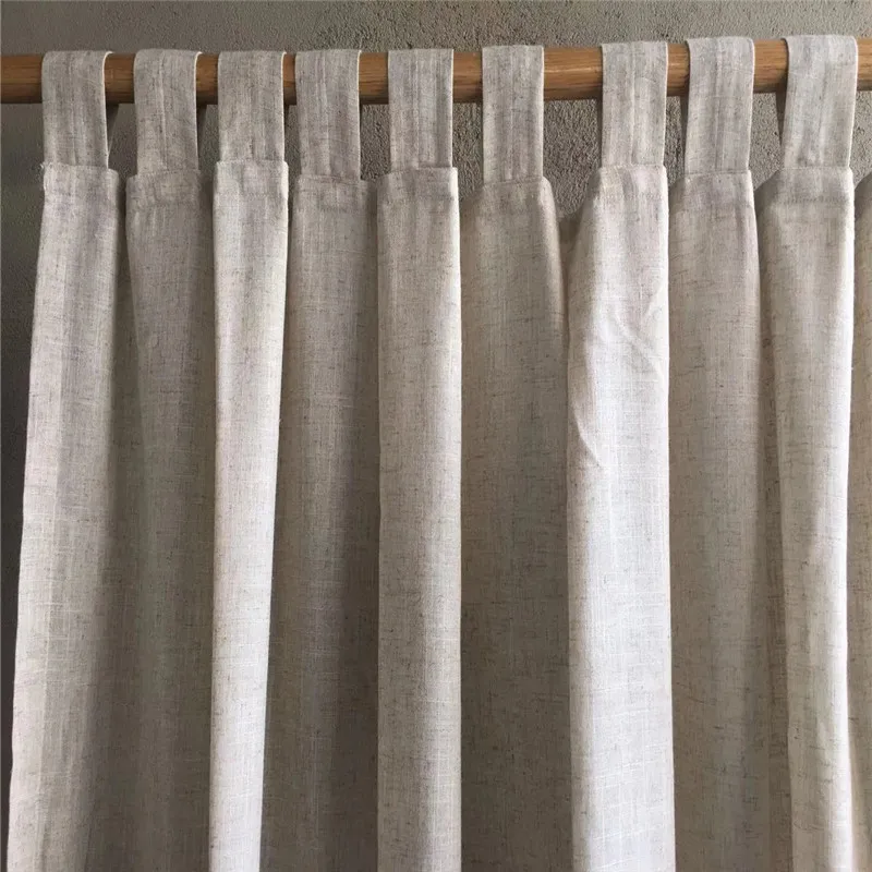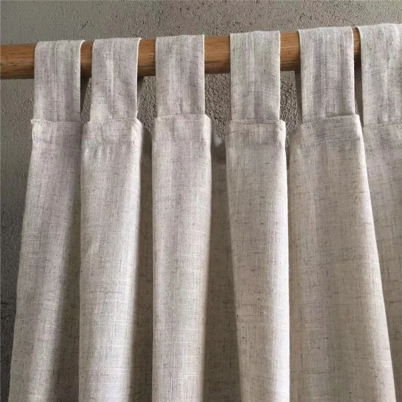 Chic Beige Cotton Linen Semi-Blackout Drapes for Home & Cafe, Customizable Tap Top Curtains