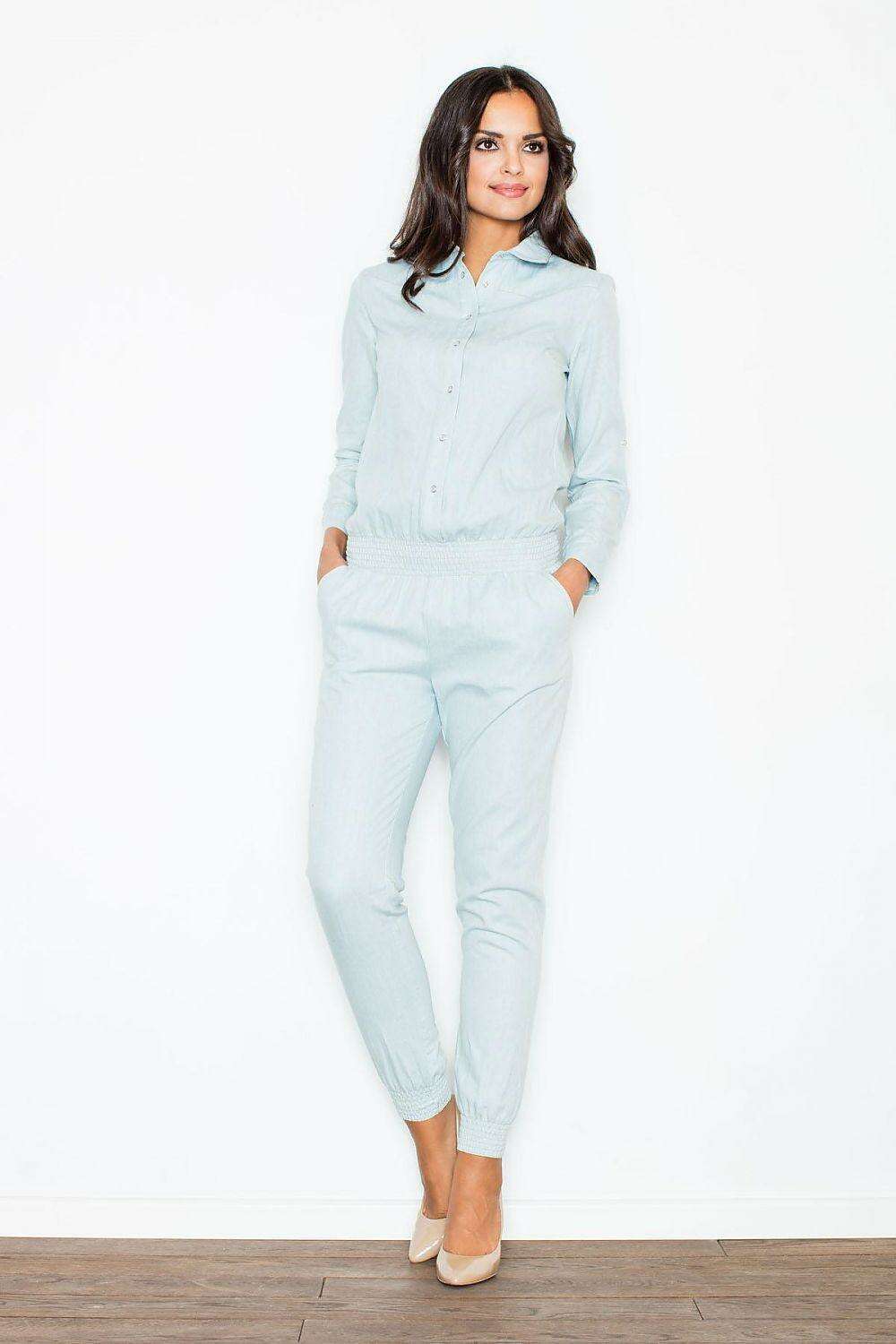 Elegant Denim Look Suit Ensemble with Classic Collared Shirt - Women's Signature Style