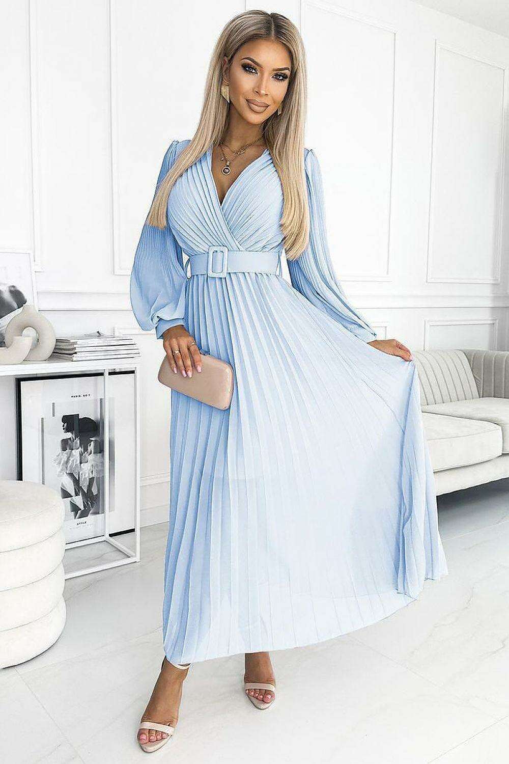 Step into a realm of sophistication with the Elegant European Blue Chiffon Pleated Evening Dress. This stunning cocktail dress is not just a piece of clothing; it is a statement of style and elegance. Crafted from high-quality pleated chiffon, this dress is designed to make a lasting impression.