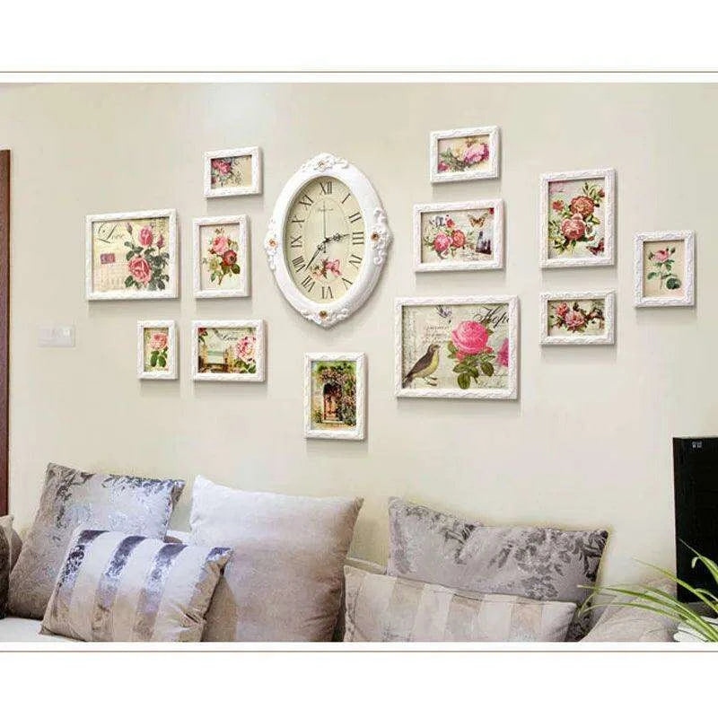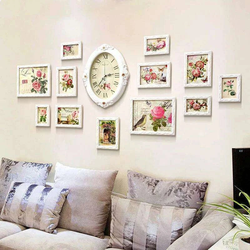 Elegant European-Inspired Wall Art Set with Clock and Picture Frames