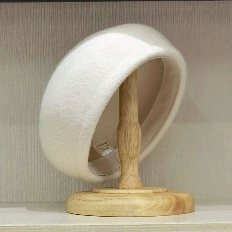 Elegant Gold-Accented Wool Beret Hat for Women - Timeless Pillbox Fascinator for Weddings and Special Occasions