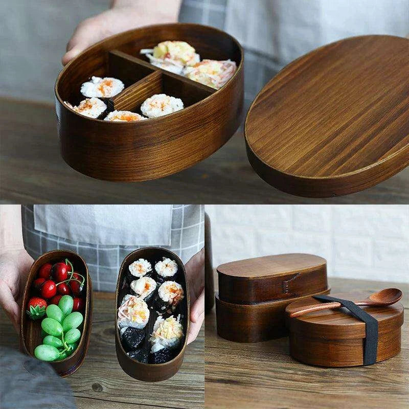 Japanese Wooden Bento Box - Portable Lunch Container for Sushi, Snacks, and Meals - Eco-Friendly Student and Office Supplies