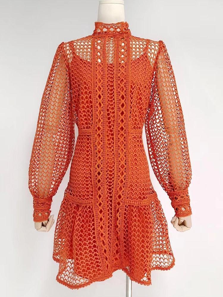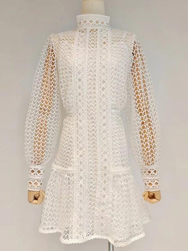 Elegant Lantern Sleeve Vintage Dress with Chic Stand Collar