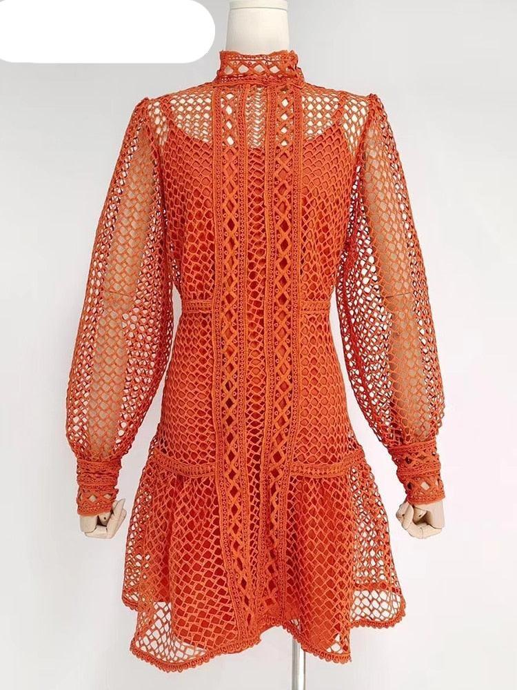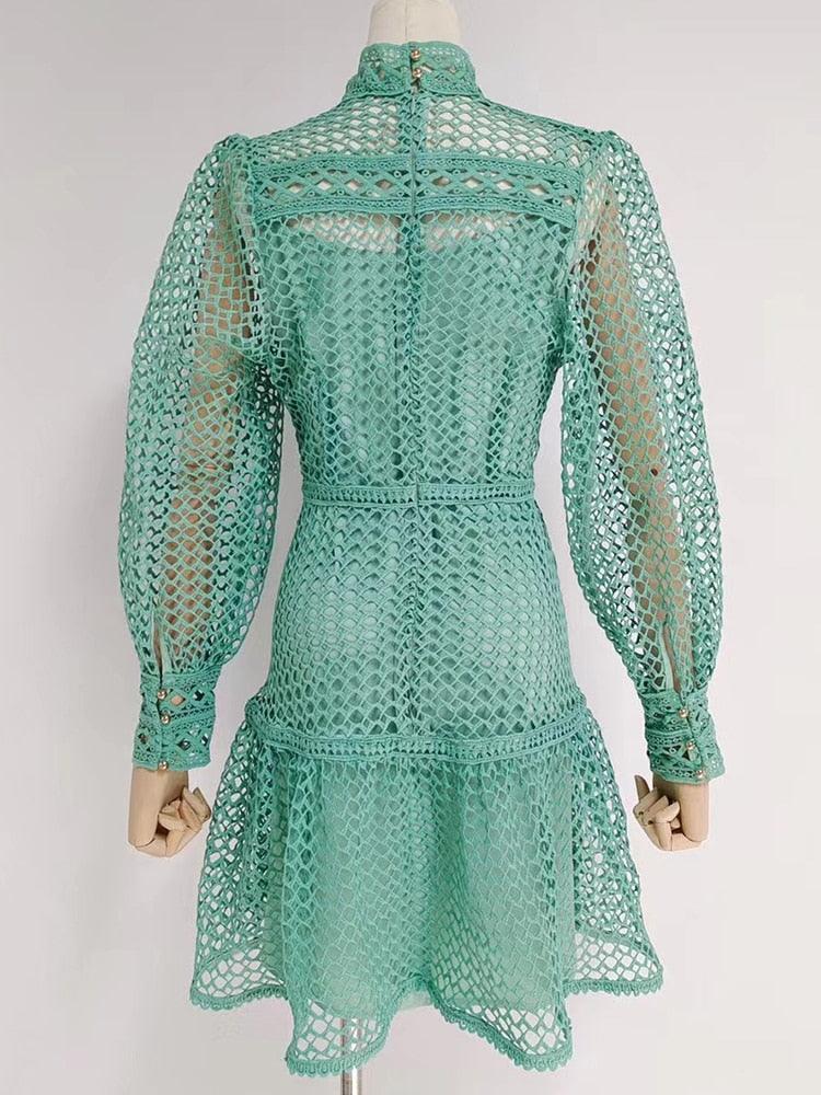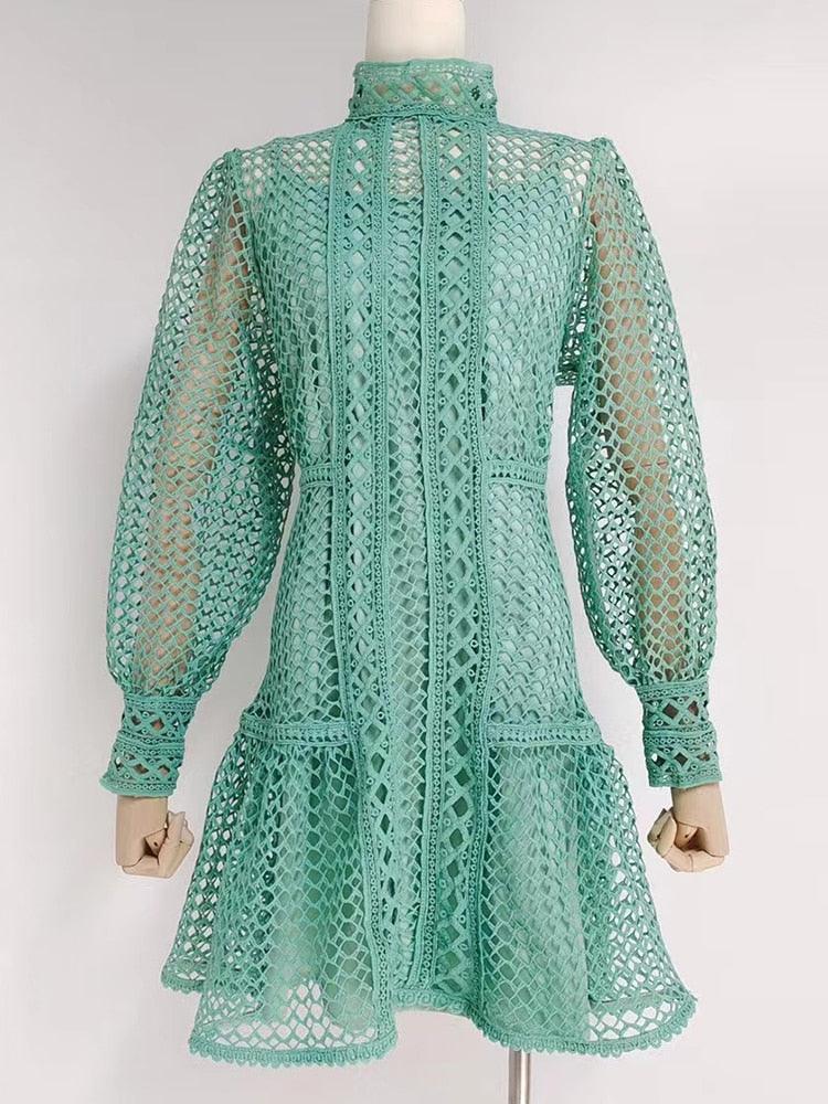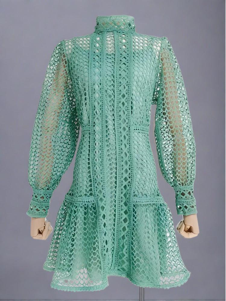 • Chic Stand Collar and Lantern Sleeves: A perfect design that seamlessly blends timeless elegance with contemporary flair.