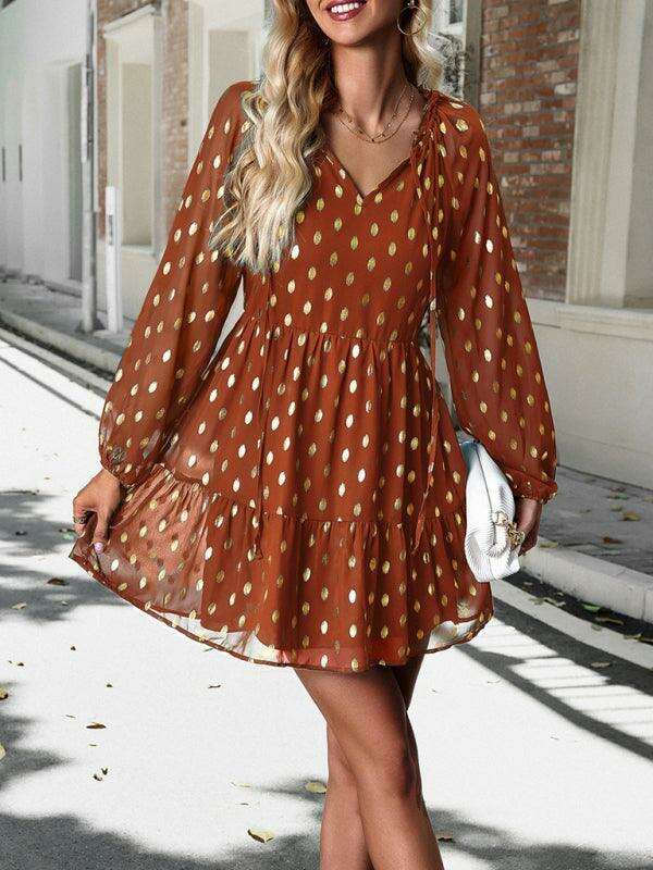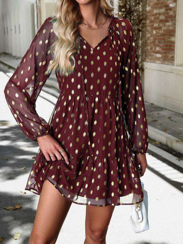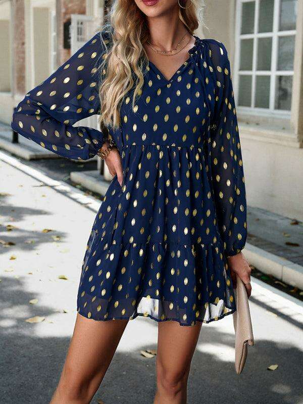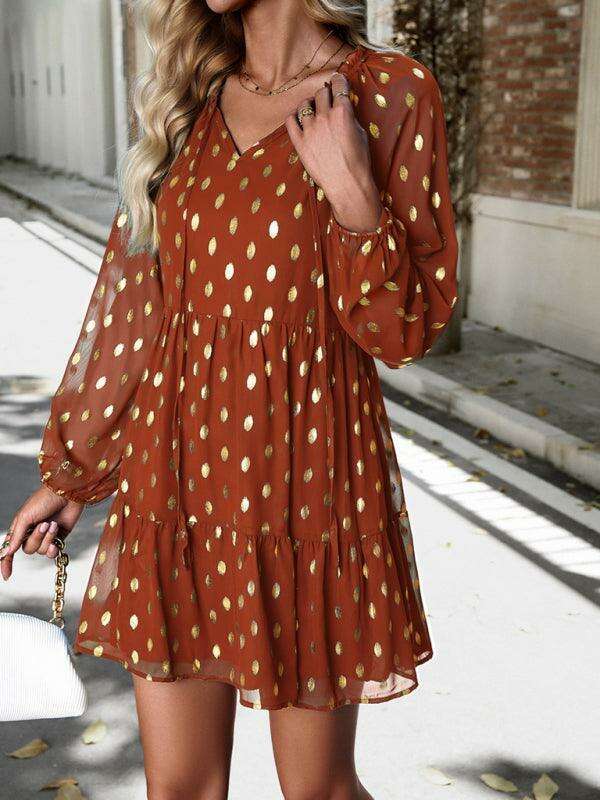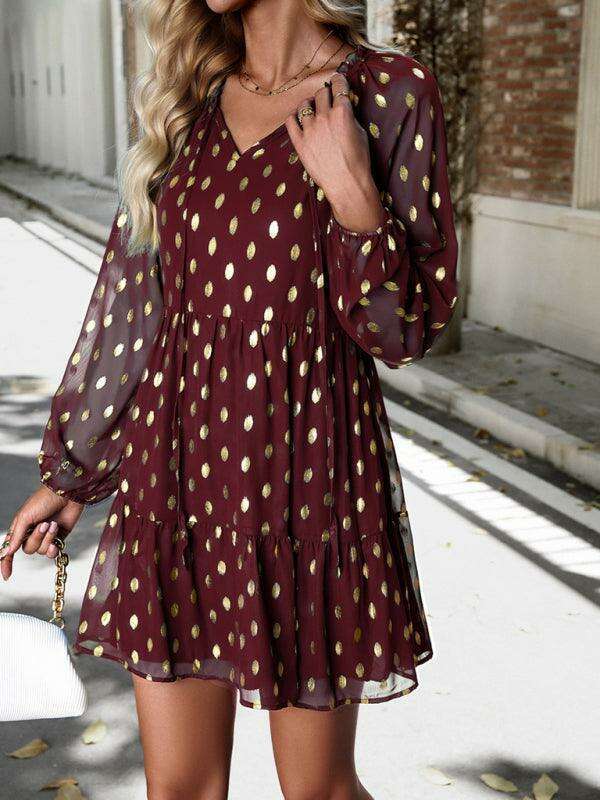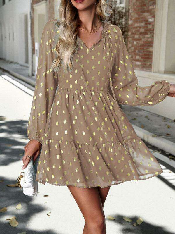 Chic V-Neck Chiffon Dress with Long Sleeves for Women - Autumn Elegance