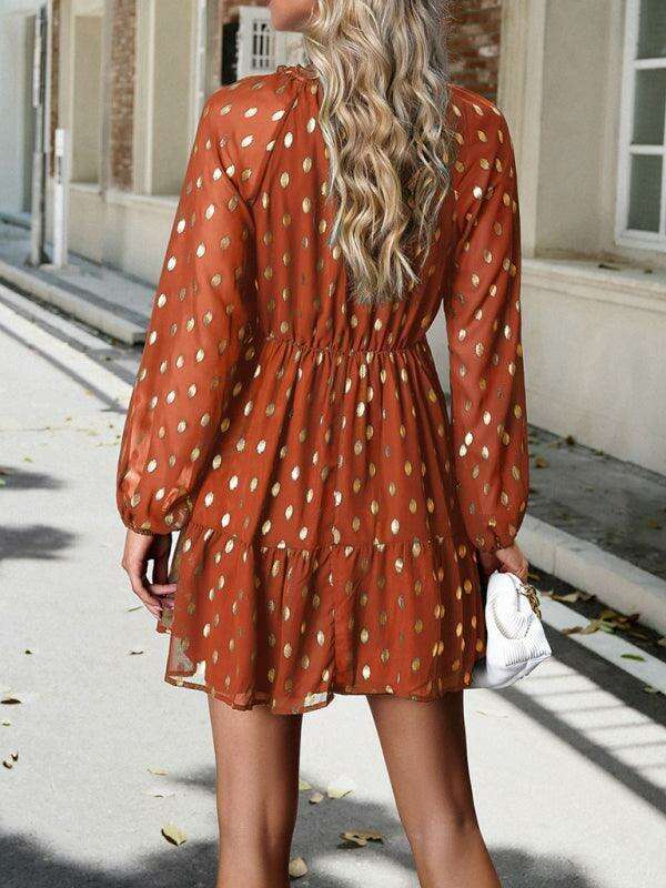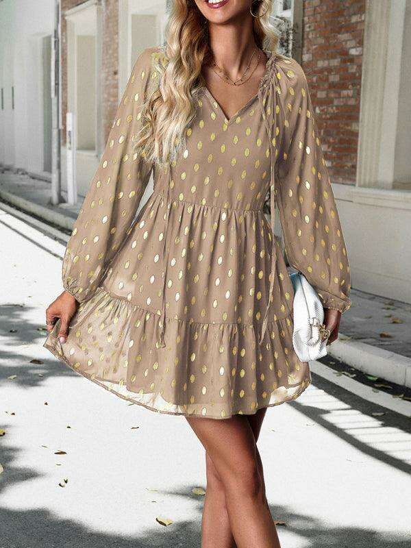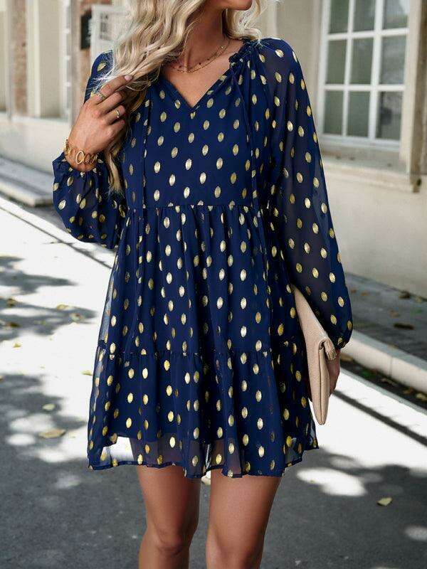 Elegant Long Sleeve Chiffon V-Neck Dress for Women - Fall Fashion