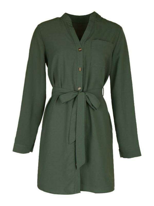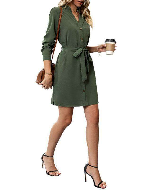 Sophisticated Women's Solid Color Long-Sleeved Polyester Dress