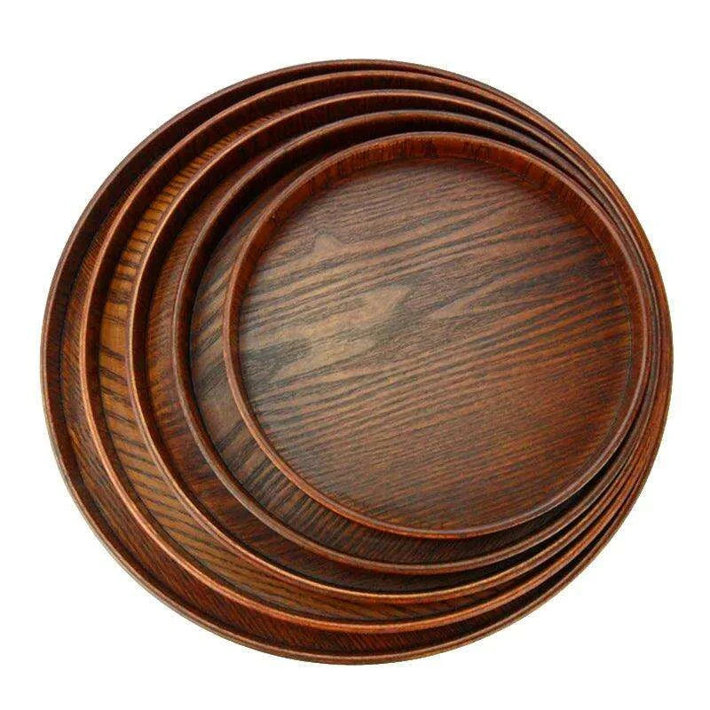 Elegant Round Wooden Serving Tray Set for Upscale Dining Experiences
