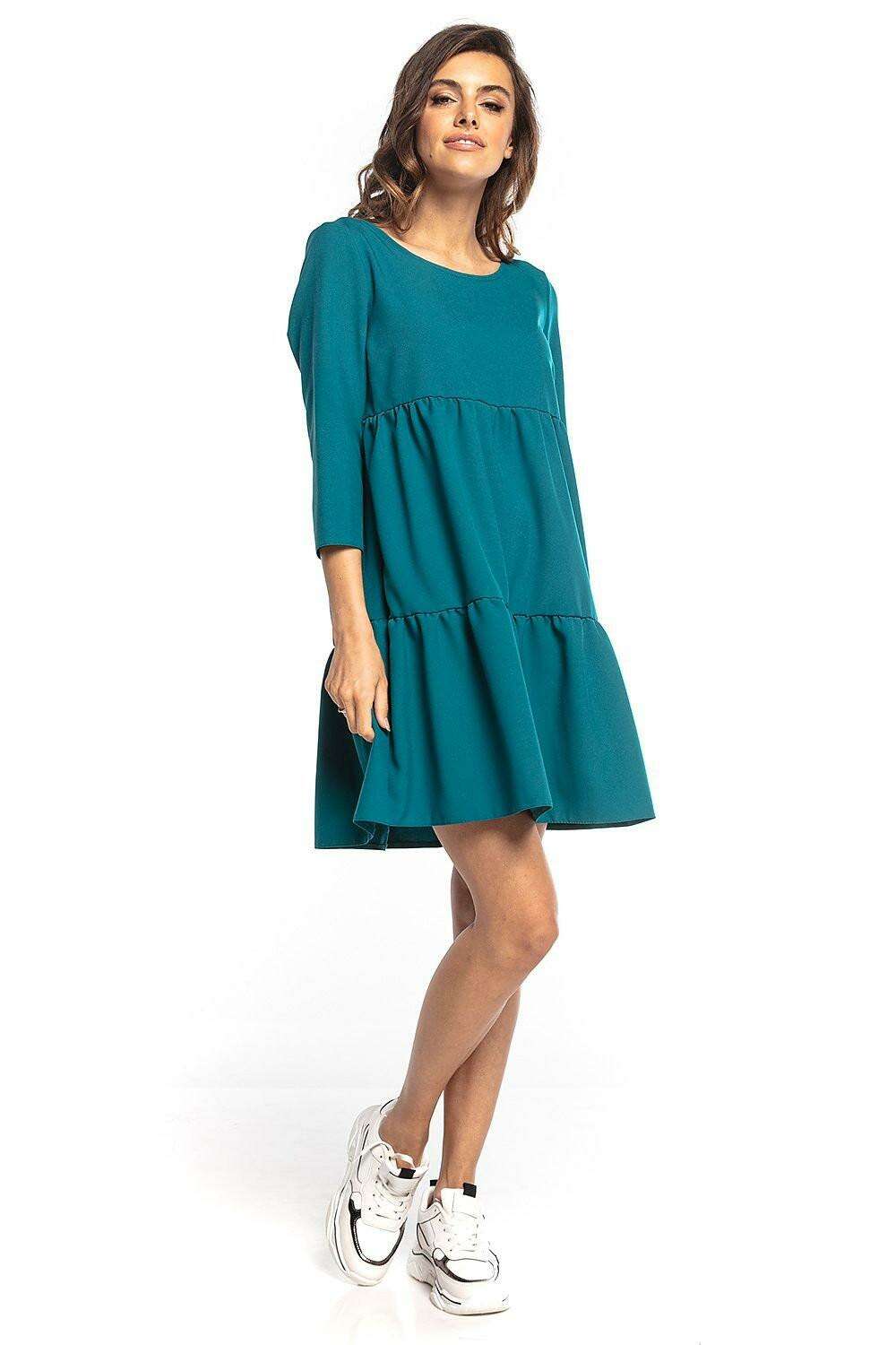 Chic Ruffled Flare Mini Dress with Boat Neck and 3/4 Sleeves