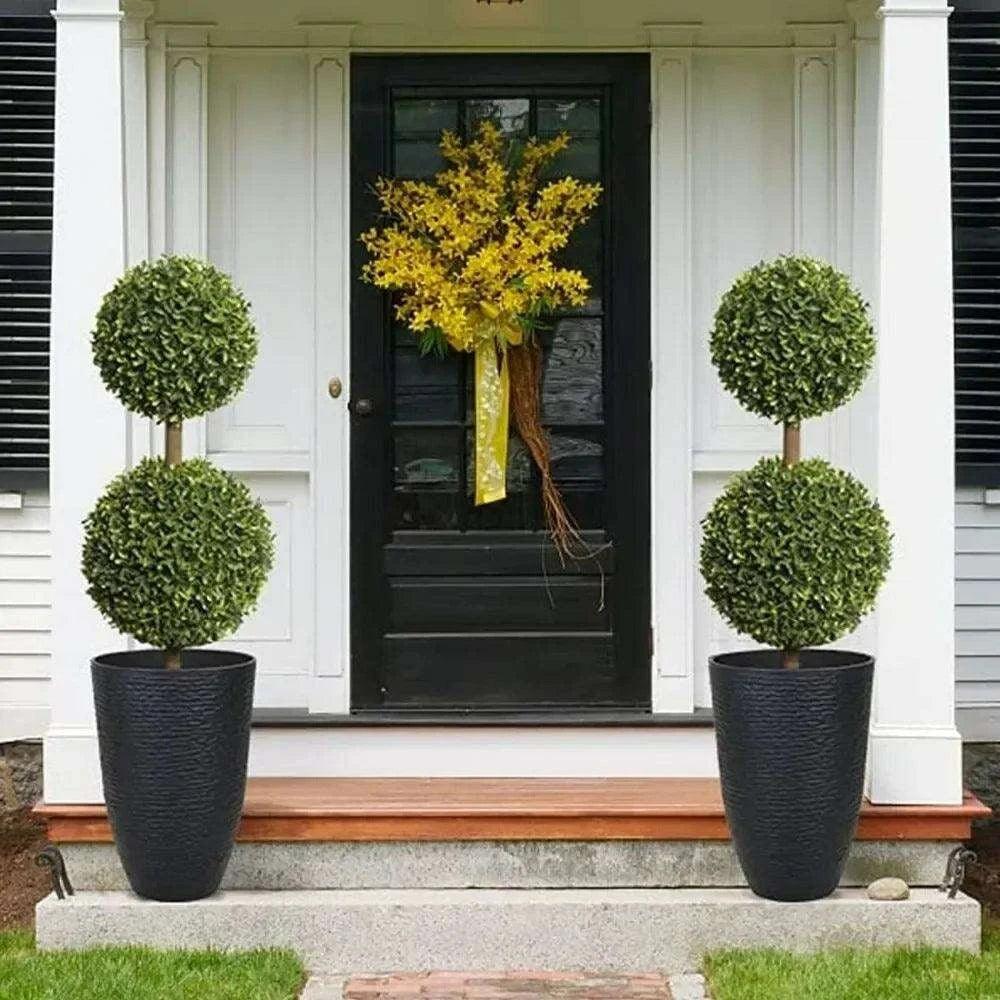 Elegant Stone Textured Tall Planter Set - Pair of 2 Resin Pots, 14'' Diameter