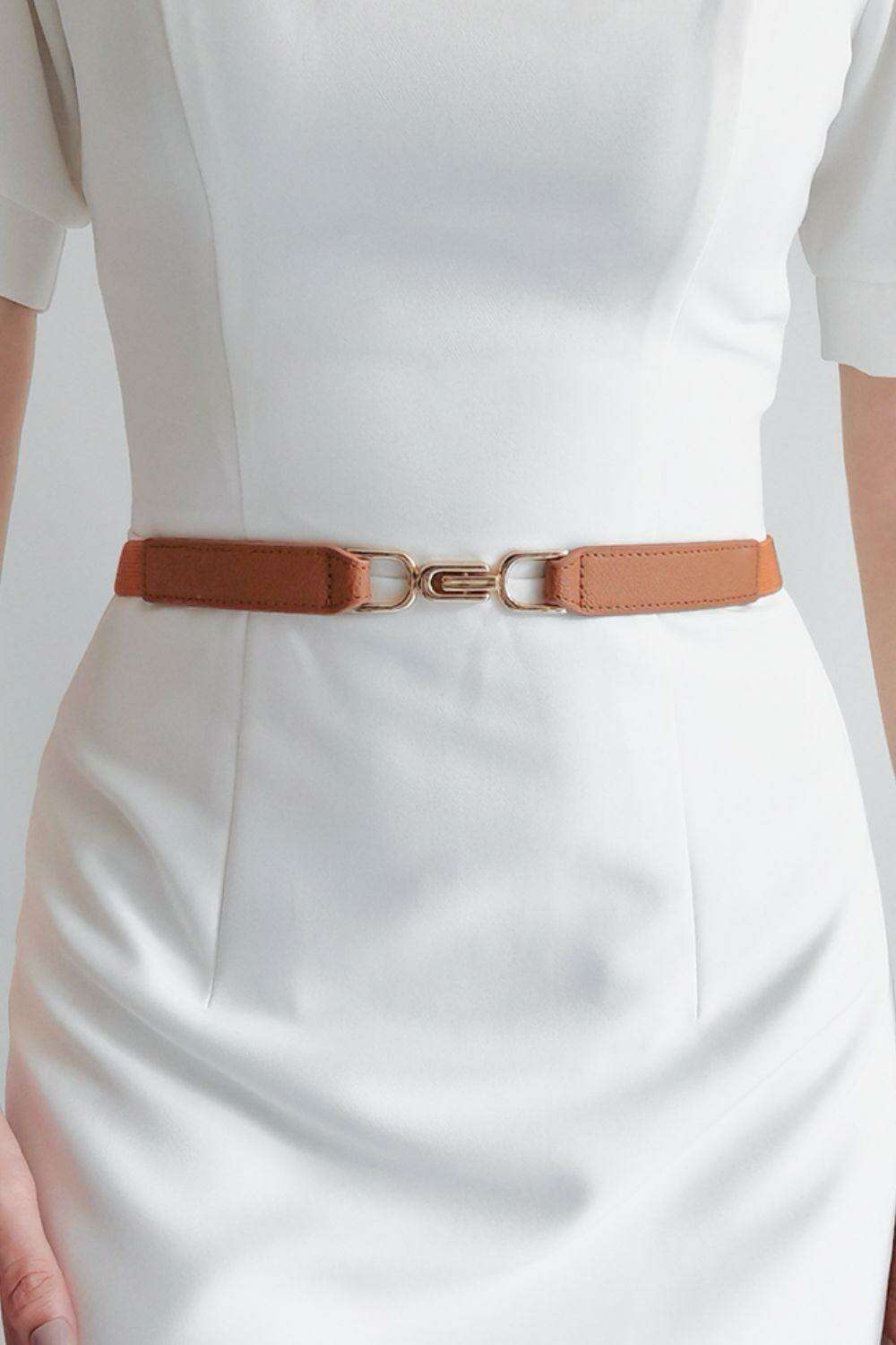 Elegant Stretch Belt with Distinctive Metal Buckle - High-Quality PU Leather