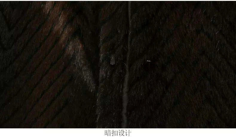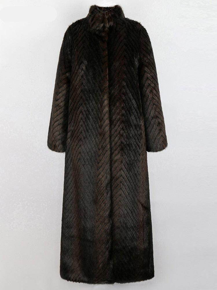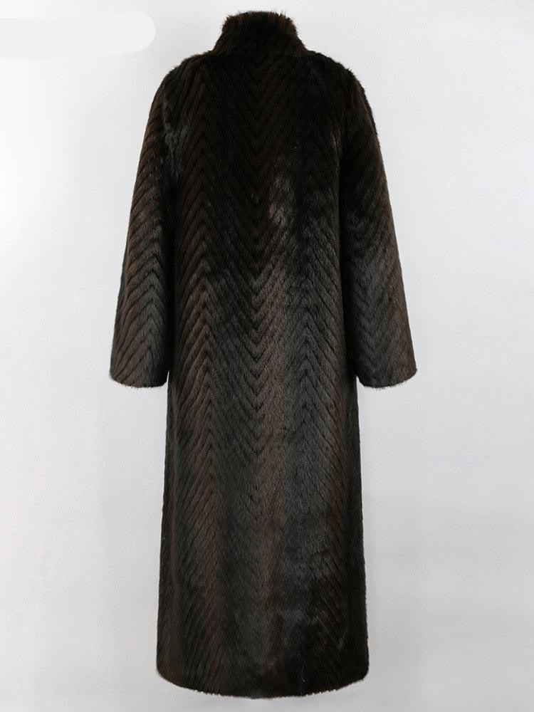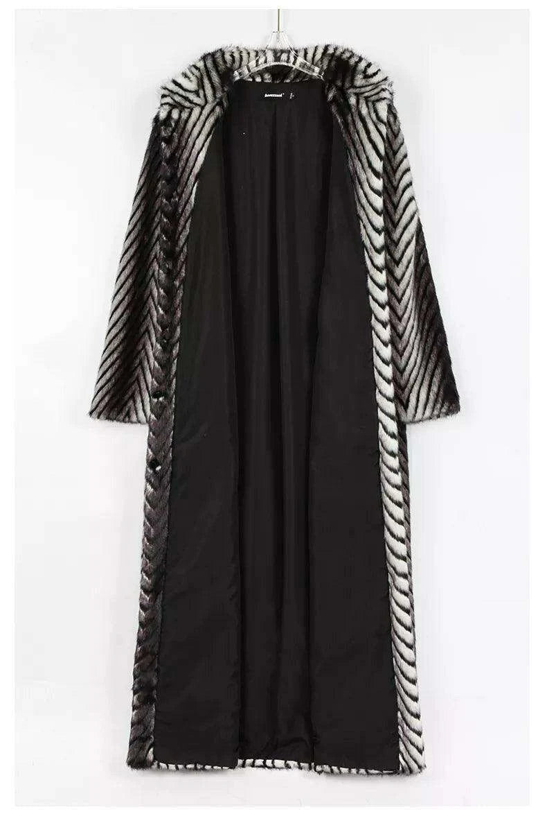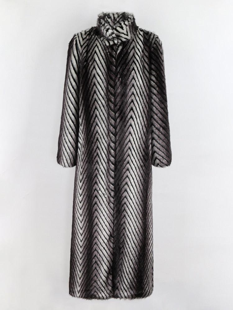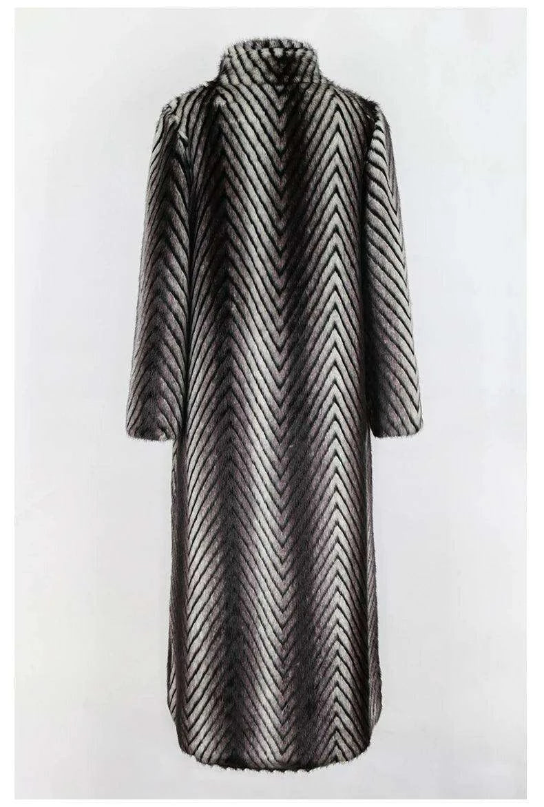 Lavish Winter Striped Faux Mink Fur Elegance Coat