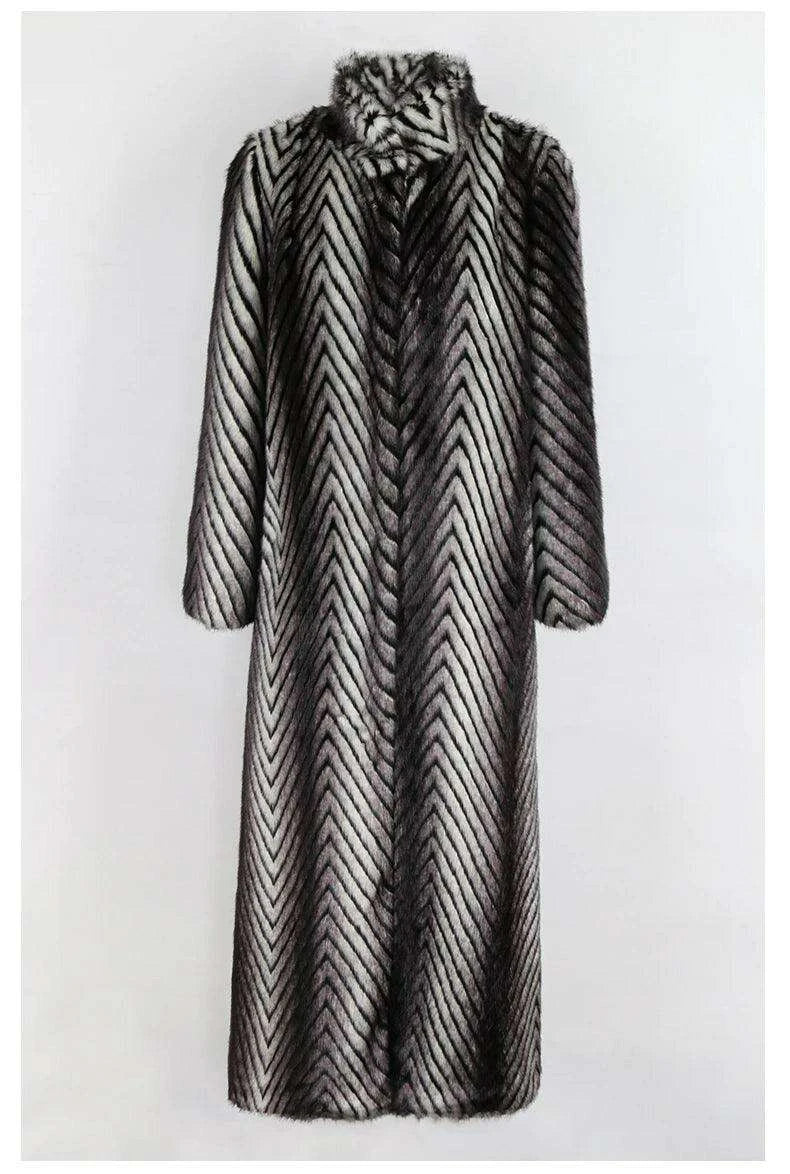 This coat is a timeless investment that redefines luxury. The rich faux mink fur offers unmatched warmth and indulgence, while the striking striped design adds an air of sophistication. It’s a staple for anyone who desires to make an impression while staying comfortable.
