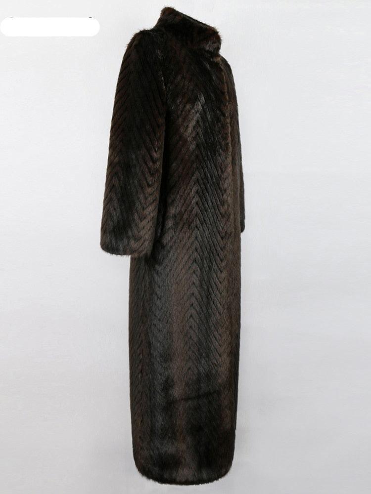Step into a realm of unparalleled luxury and warmth with our Lavish Winter Striped Faux Mink Fur Elegance Coat. This exquisite coat is not merely a winter garment; it’s a statement piece designed to elevate your wardrobe and keep you cozy during the coldest months.