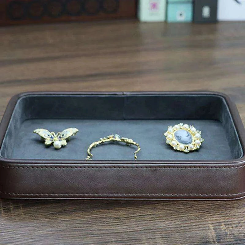 The Vintage Genuine Leather Jewelry Storage Tray is more than just a practical item; it is a statement piece reflecting both sophistication and durability. Its spacious, sleek rectangular design makes it the perfect choice for organizing your most cherished possessions.