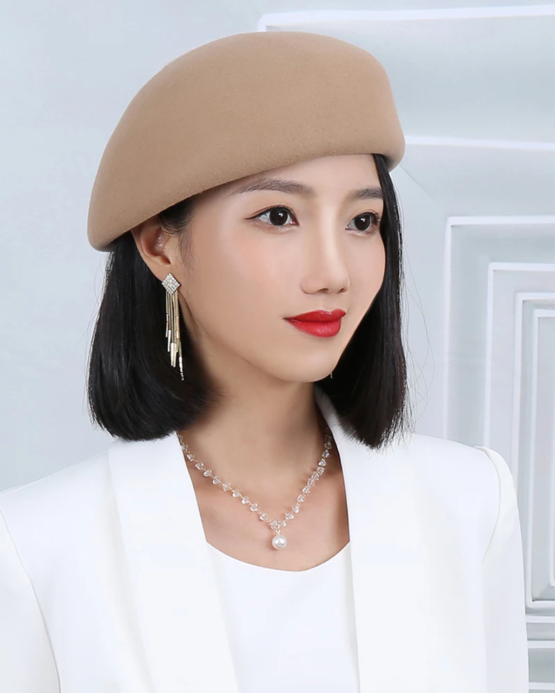 Elegant Women's Wool Felt Beret - French-Style Winter Hat for Special Occasions and Formal Gatherings
