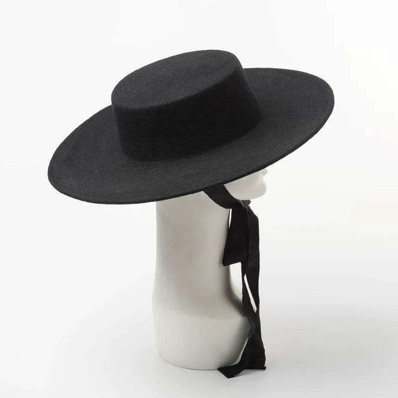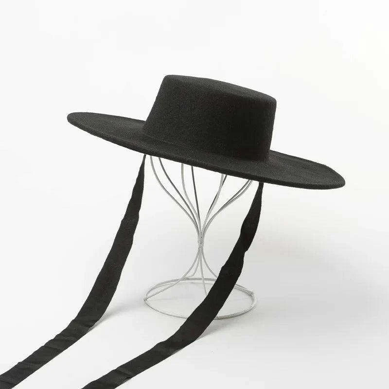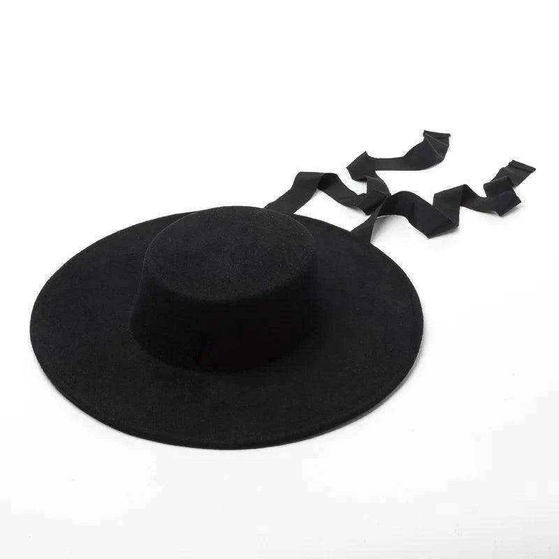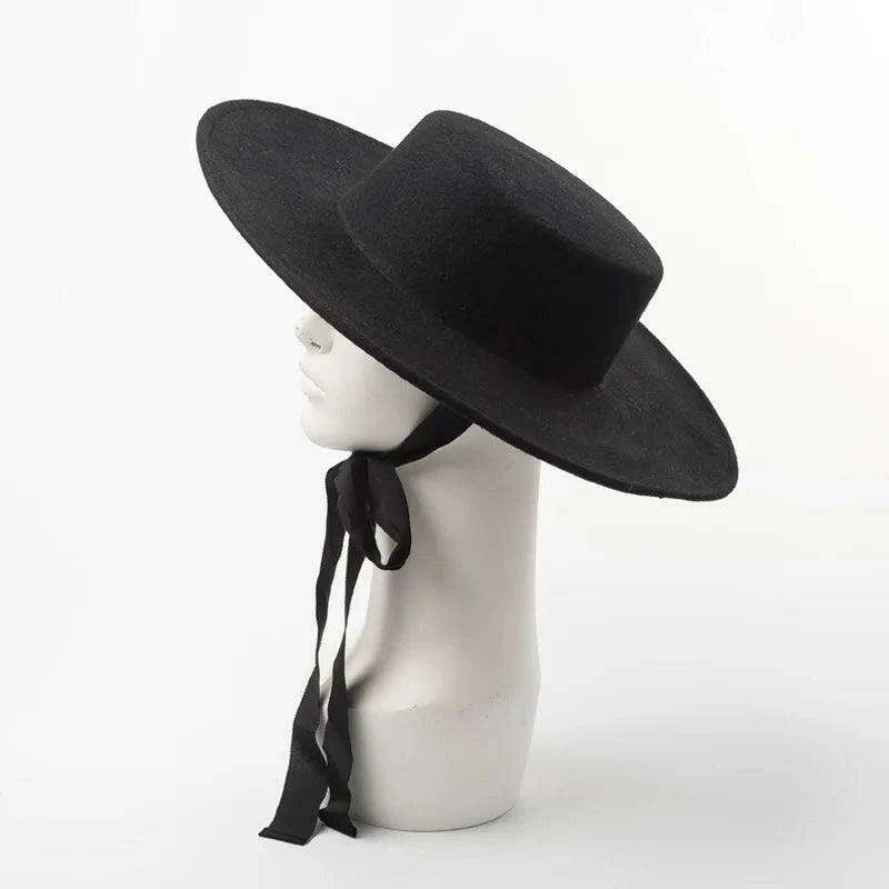 Elegant Wool Boater Hat - Fashionable Wide Brim Felt Hat with Stylish Ribbon for Men and Women - Essential Winter Outdoor Accessory