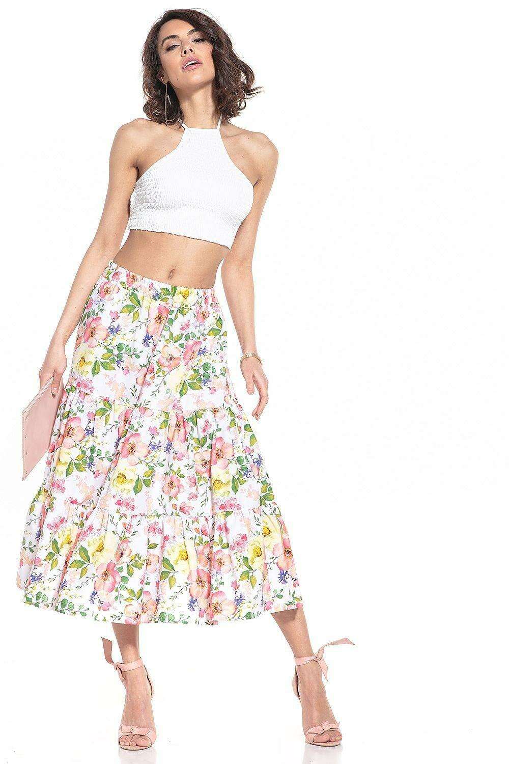Embrace your feminine side and make a statement with this gorgeous skirt that is as versatile as it is stylish. Add the Floral Print Long Cotton Skirt - Tessita to your collection today!