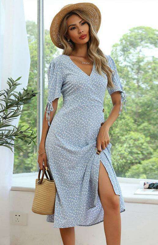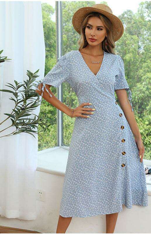 This elegant V-Neck Floral Puff Sleeve Maxi Dress is perfect for: