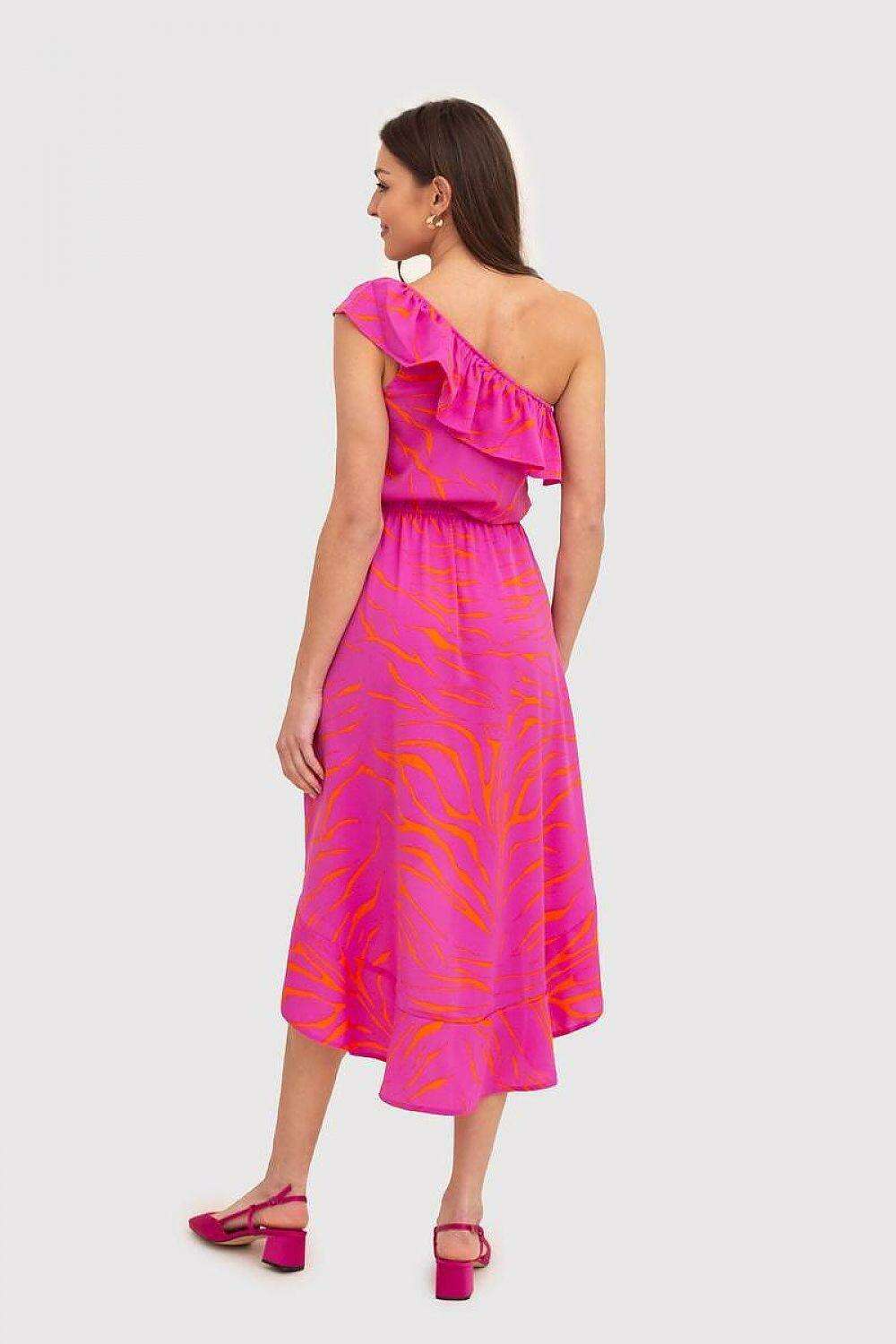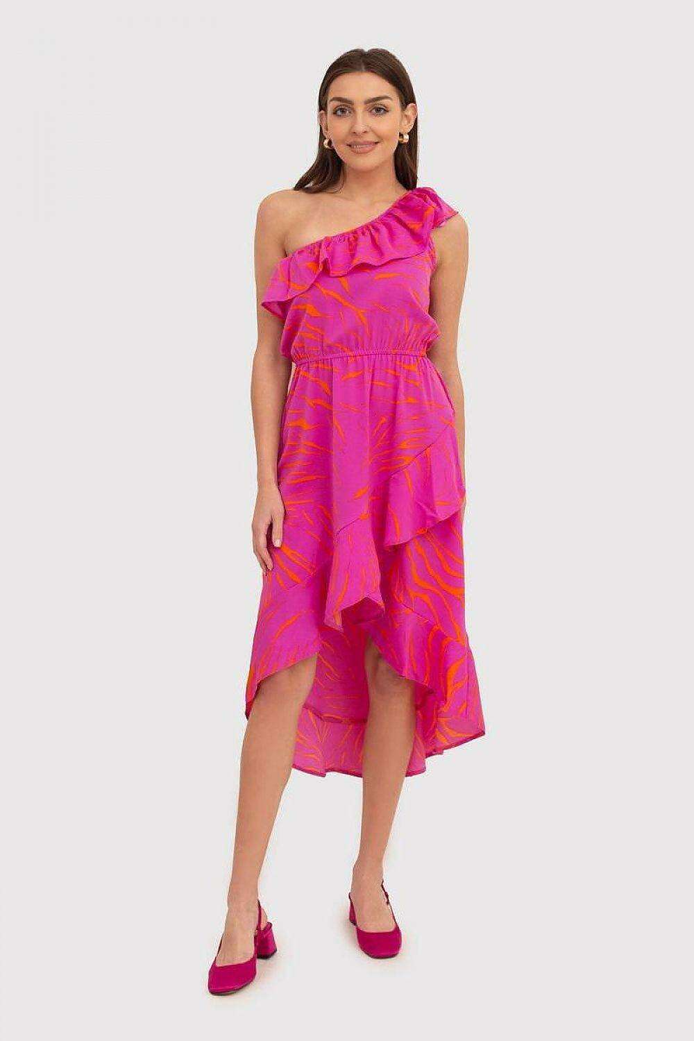 Fuchsia Floral Ruffle One-Shoulder Daydress