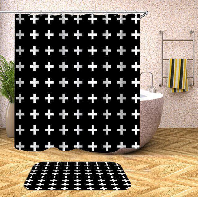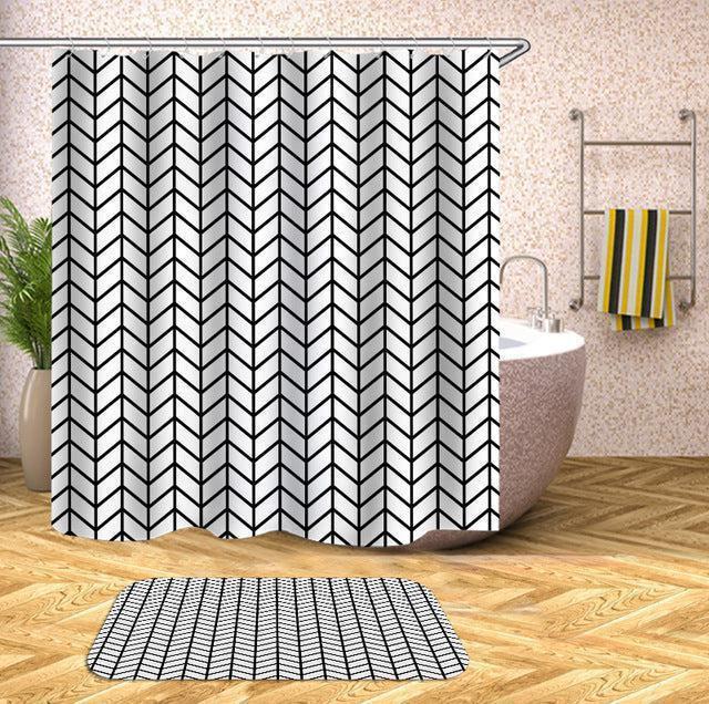 Chic Geometric Bathroom Shower Curtain Set with Stylish Hooks