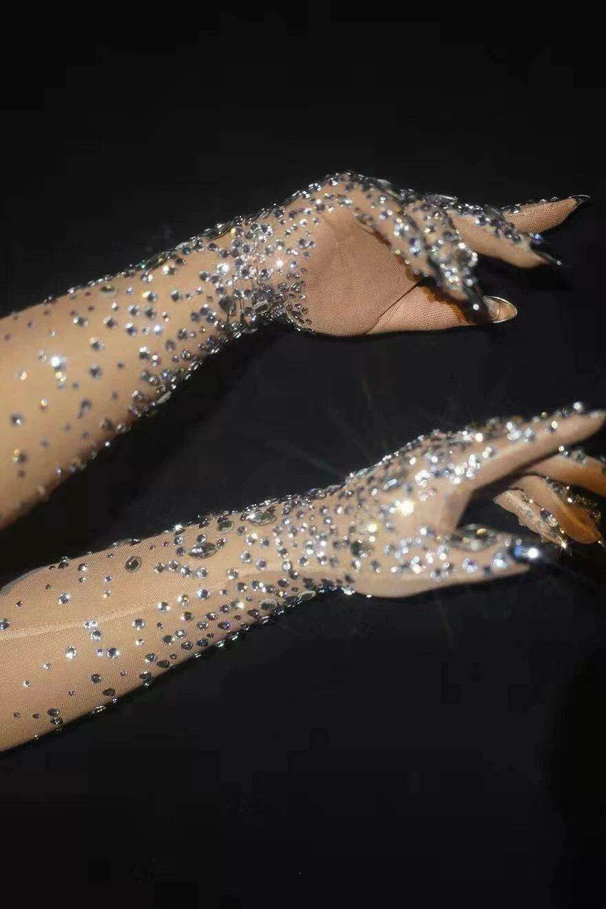 Whether you're hitting the dance floor or taking center stage, these stunning rhinestone gloves are sure to make a statement, turning heads and capturing attention wherever you go.