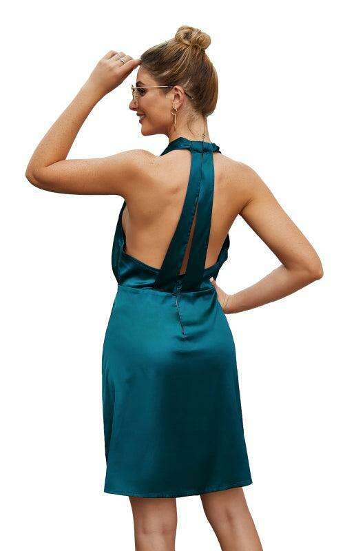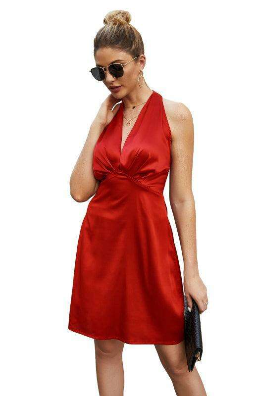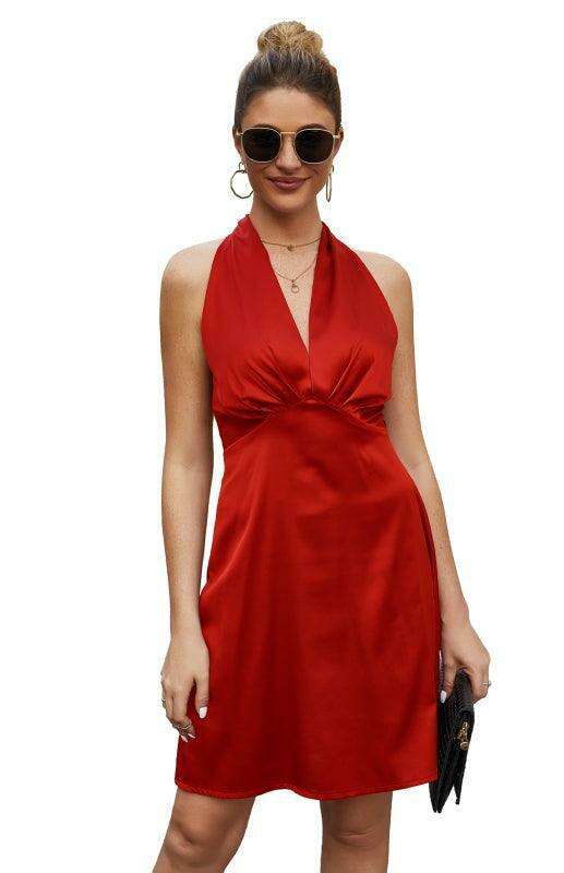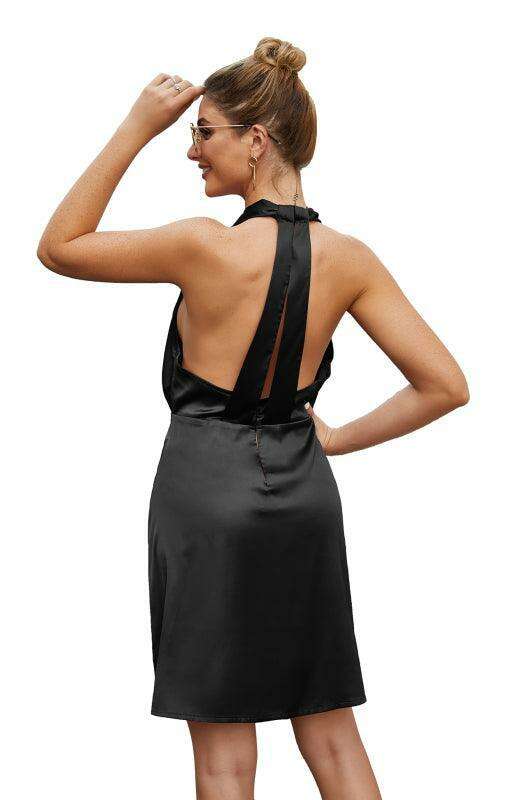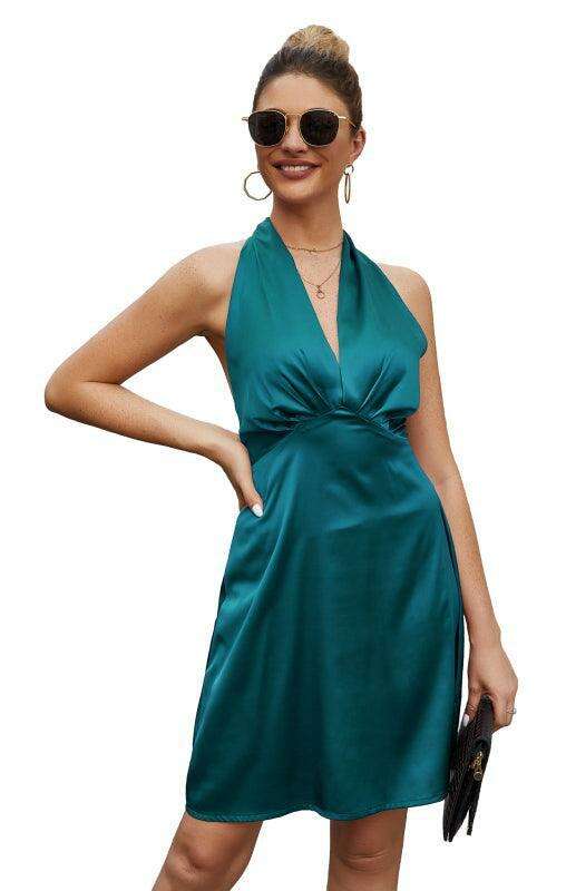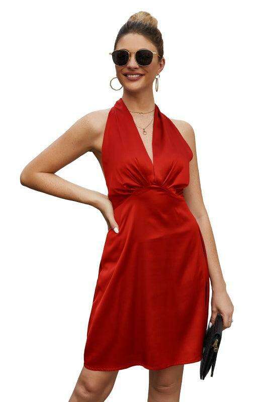 Glamorous Spring V-neck Satin Backless Dress for Women