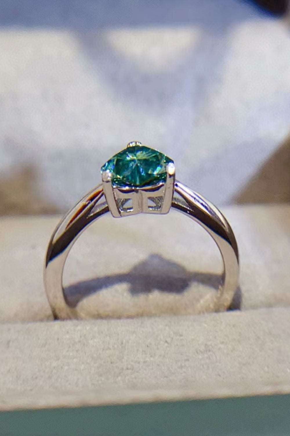 - Stone: Features a 1 carat lab grown green diamond heart ring with a mesmerizing moissanite stone