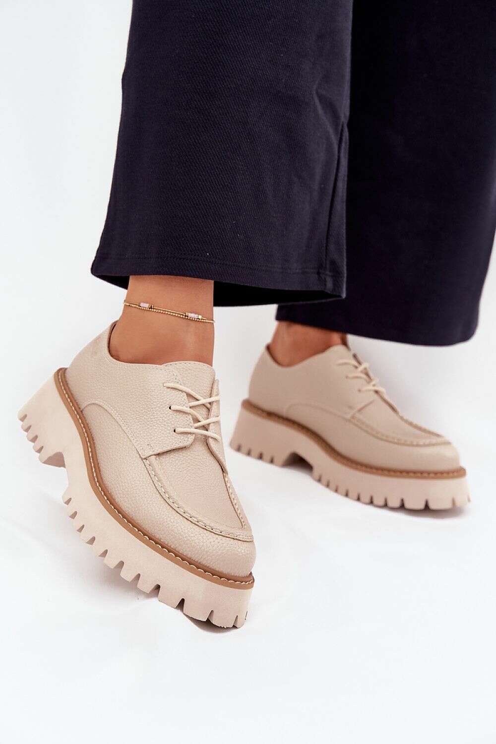 Women's loafers in the style of moccasins from the Bi Star brand are an elegant proposal for everyday wear. Made of high-quality eco leather, they combine a fashionable look with environmental care. Laced, they ensure a perfect fit to the foot, and the platform and flat heel guarantee comfort with every step. Rounded toes add subtlety and lightness, making these loafers a perfect complement to both casual and more elegant stylizations.