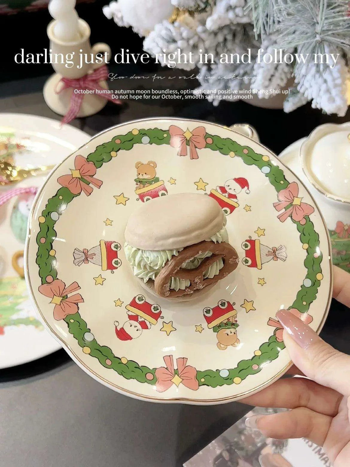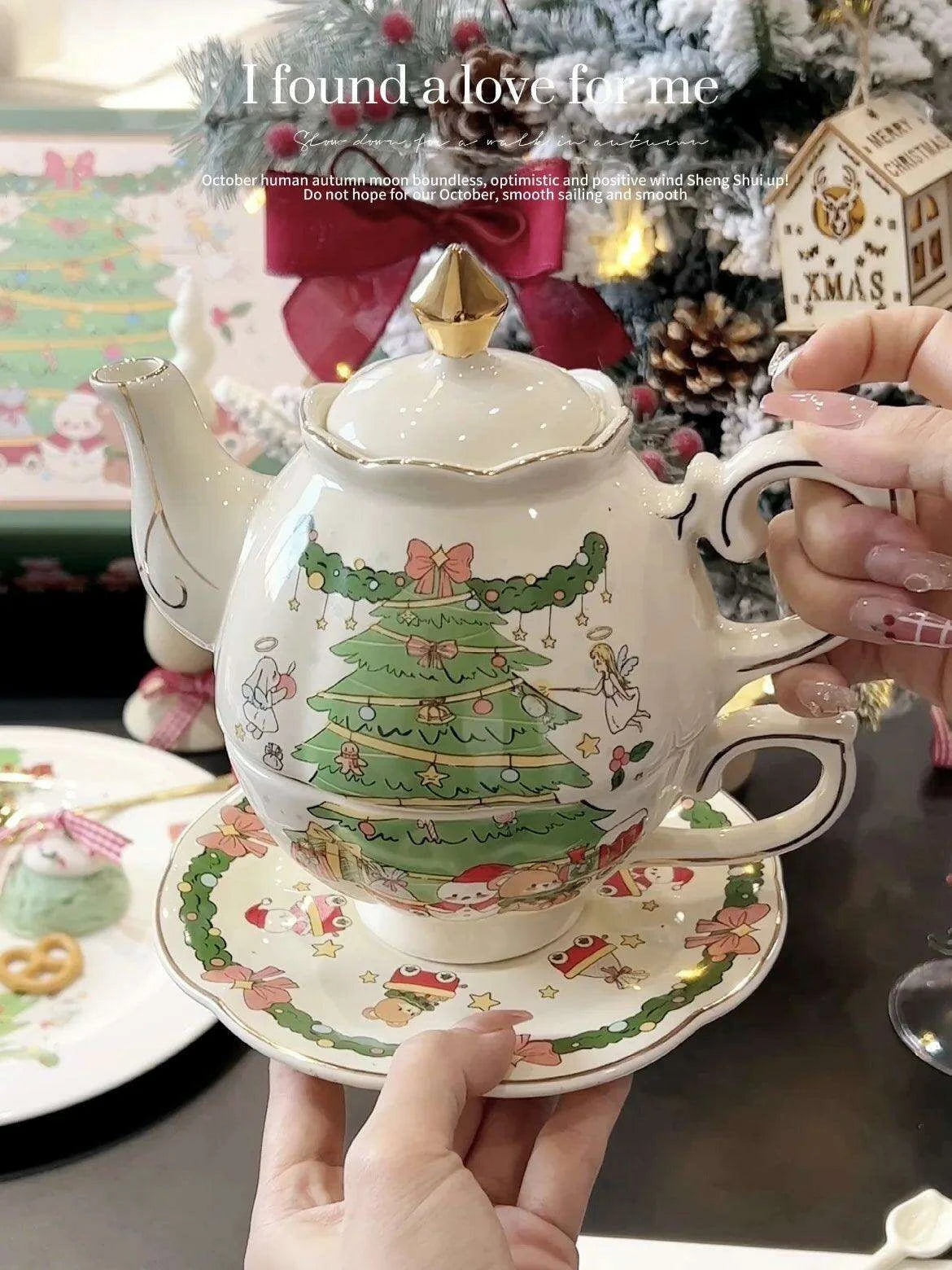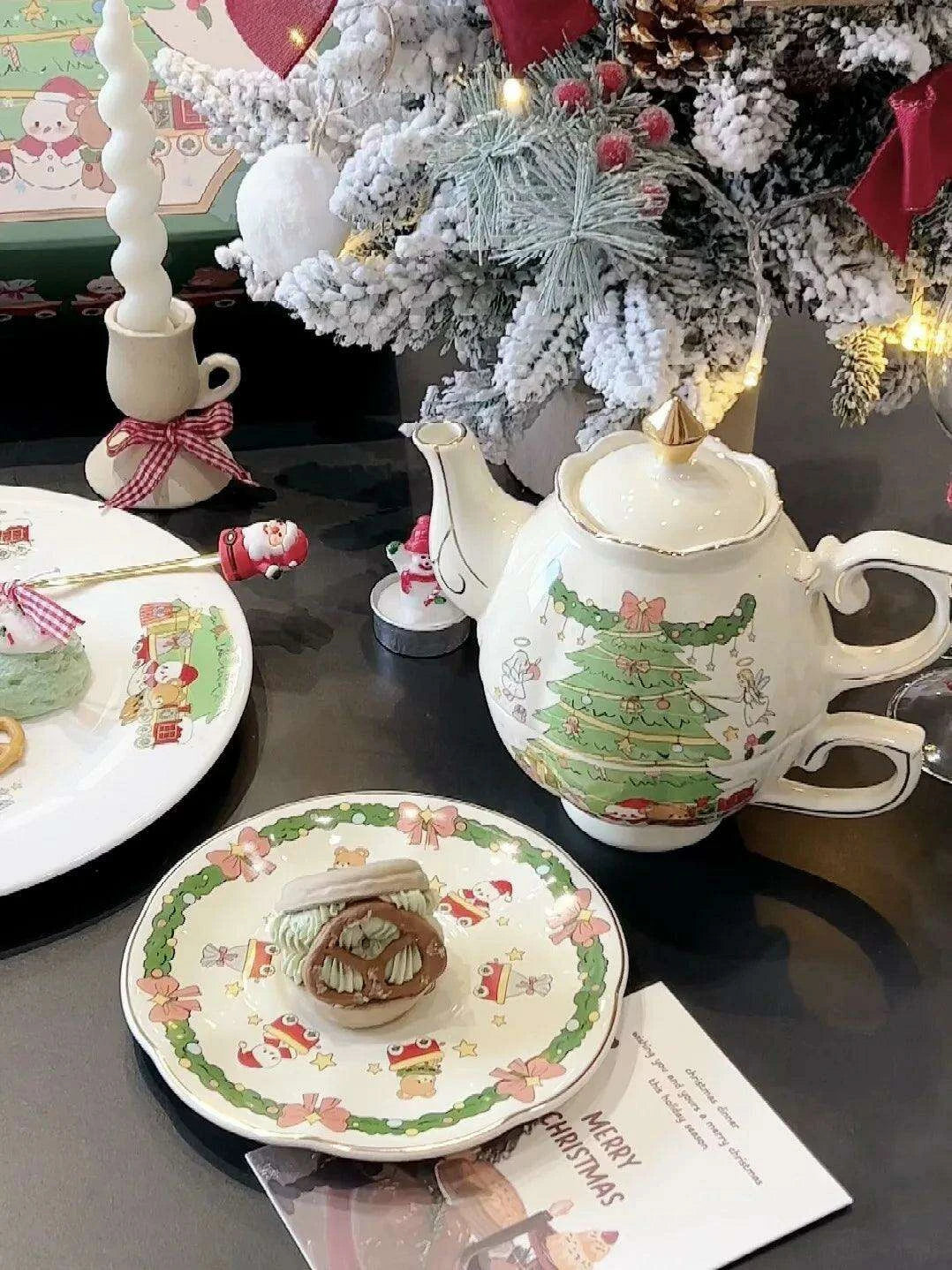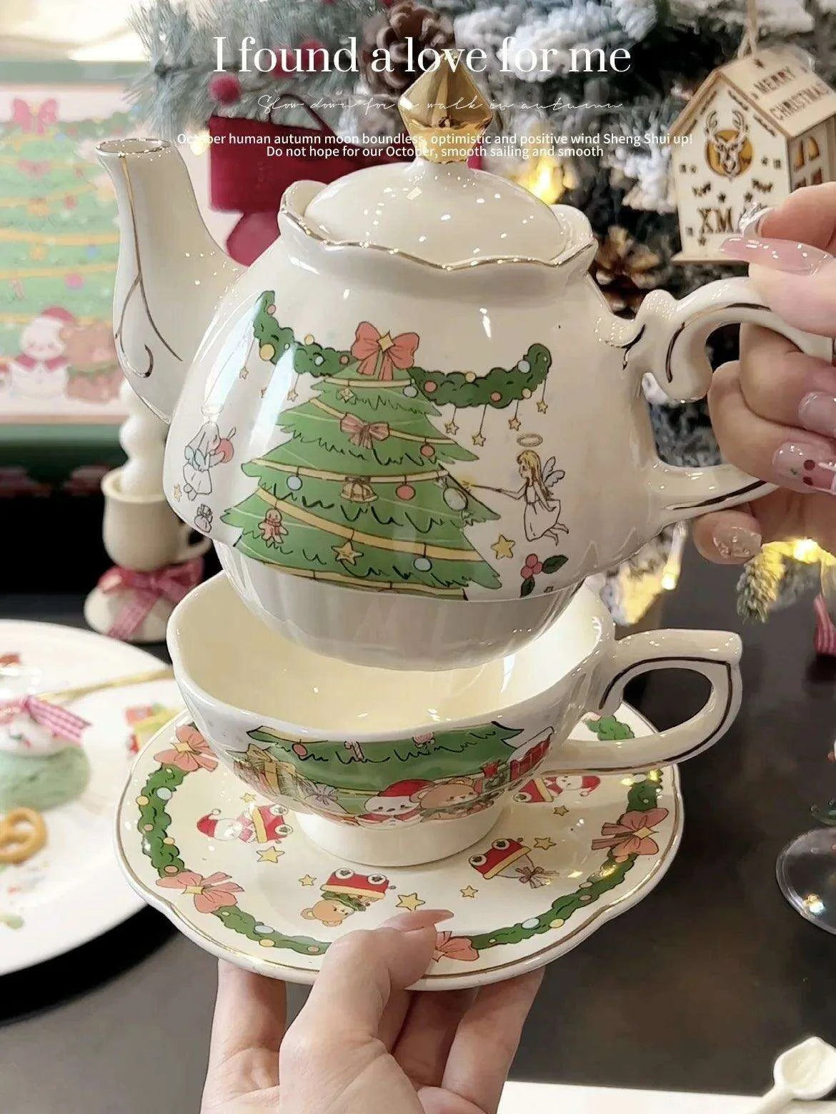 Vintage-Inspired Hand-Drawn Christmas Tea Set in Gift Box