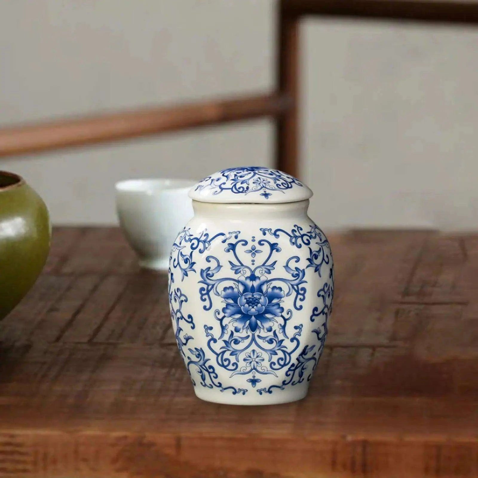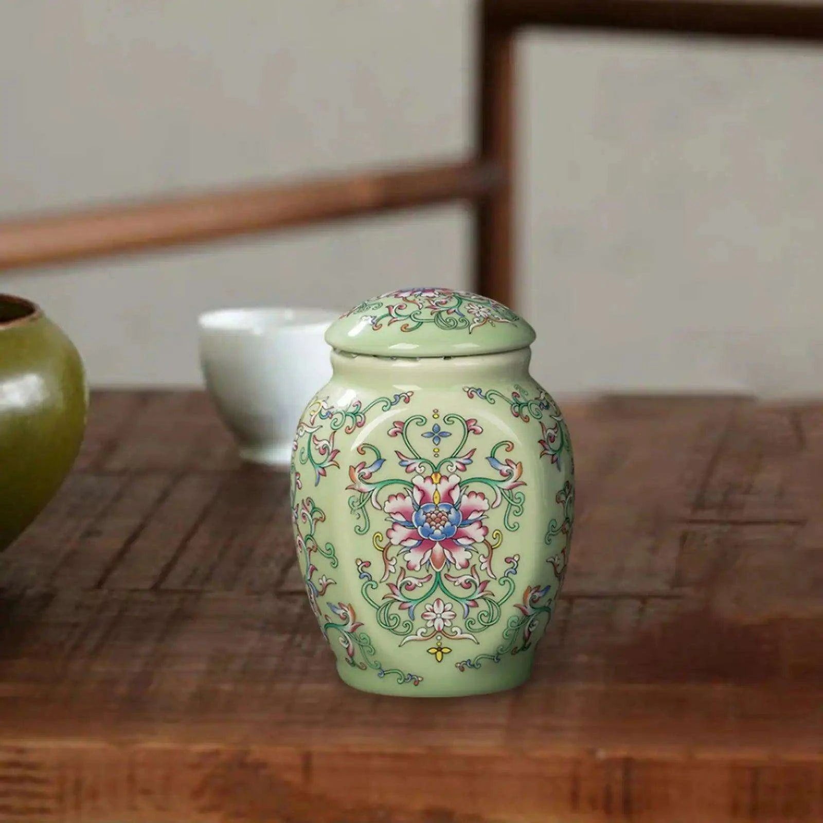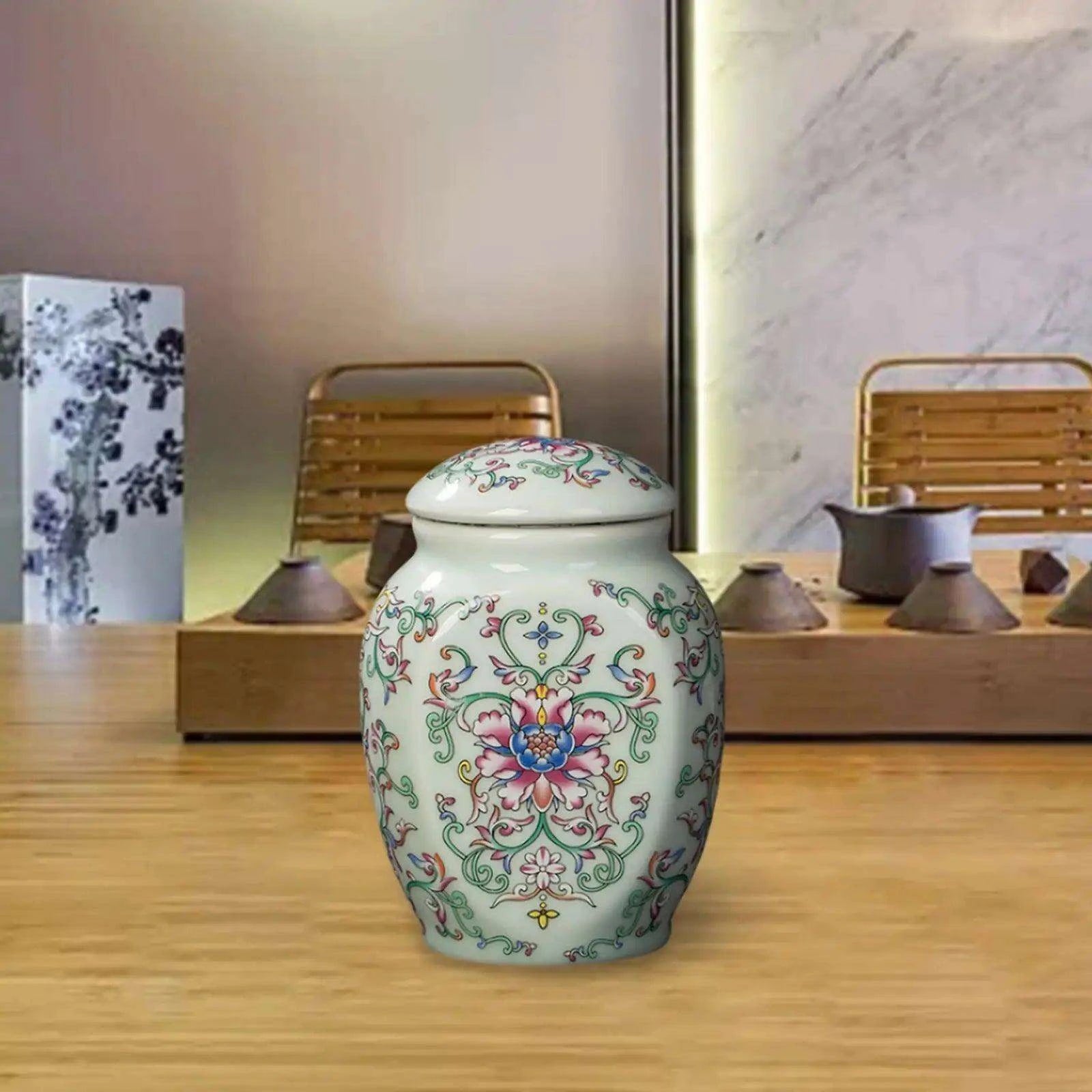 Hand-Painted Porcelain Floral Vase Jar - Stylish Tea Storage and Home Decor Piece
