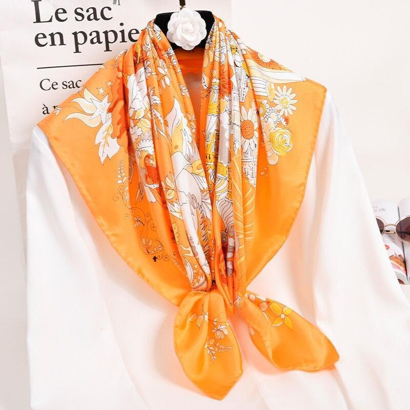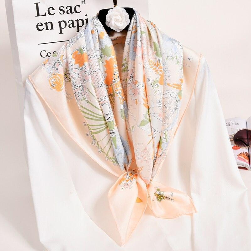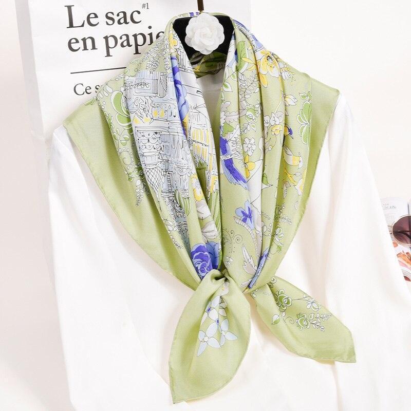 Exquisite Hangzhou Print 100% Silk Square Scarf - Timeless Elegance Design