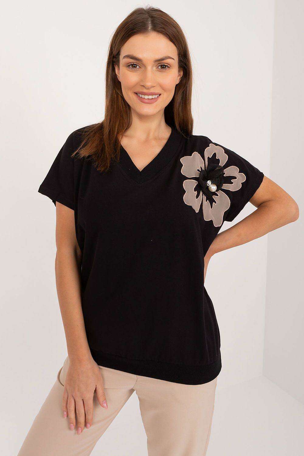 Chic Cotton Blouse with Floral Zircon Accents