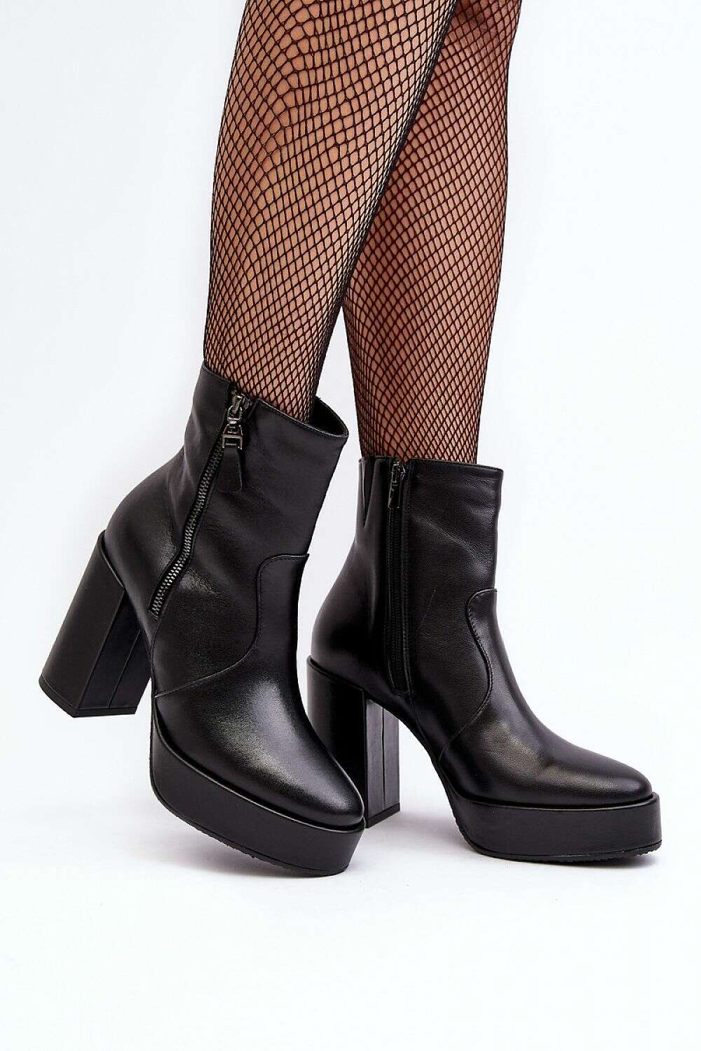 Women's boots made of natural leather. Set on a massive post and platform. Rounded toe caps. Zip fastening. Stiffened heel... Read more Read more