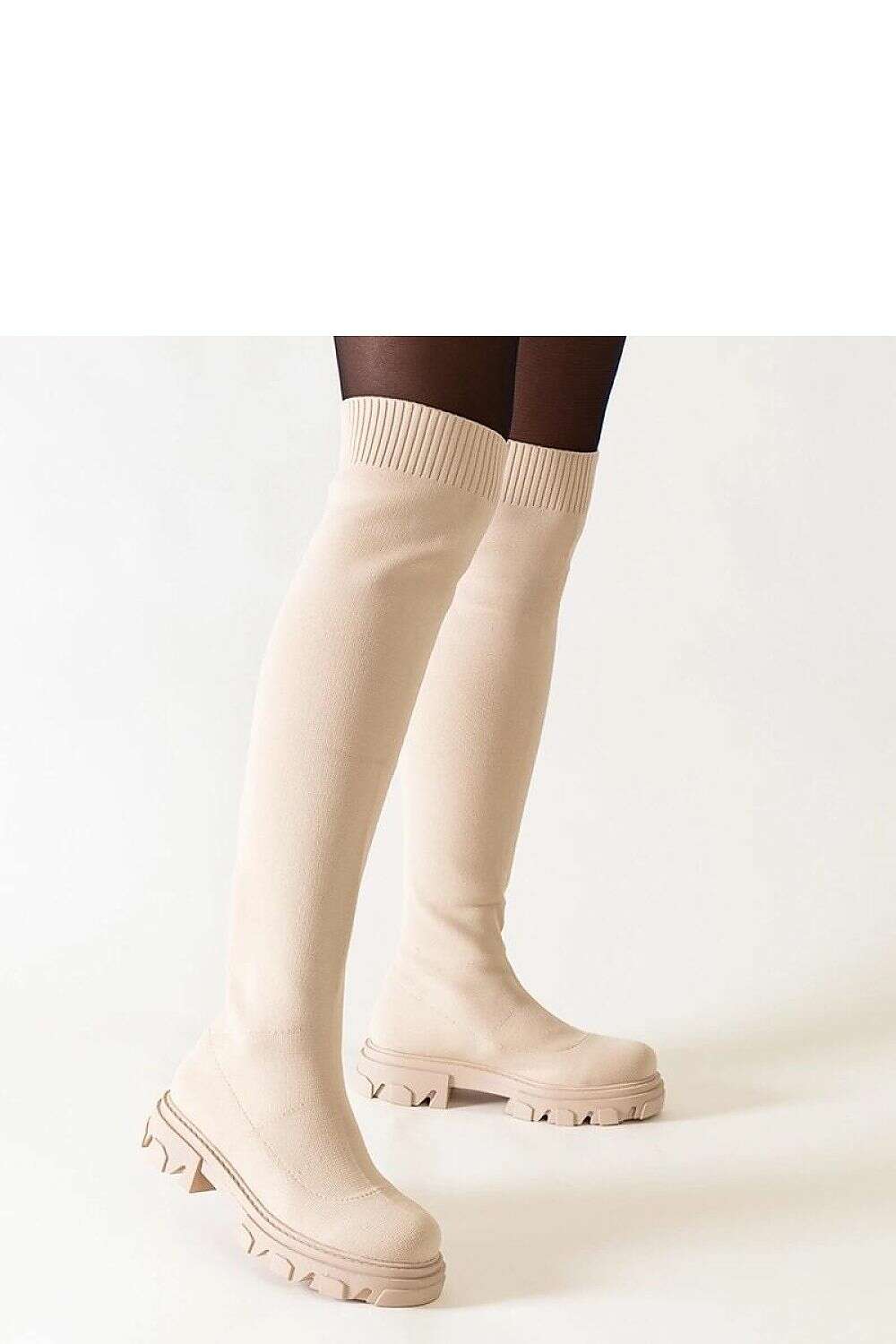 Long beige material boots on the Athira platform are shoes that should be in every woman's wardrobe! These elegant boots not only look great, but also provide comfort when worn. Their round toe and slip-on closure make them easy to put on. Additionally, the boots are insulated, which makes them perfect for cooler days. Made of rubber, they provide excellent grip. Careful and solid stitching guarantees that they will serve for many seasons. Don't wait any longer and add them to your collection now!