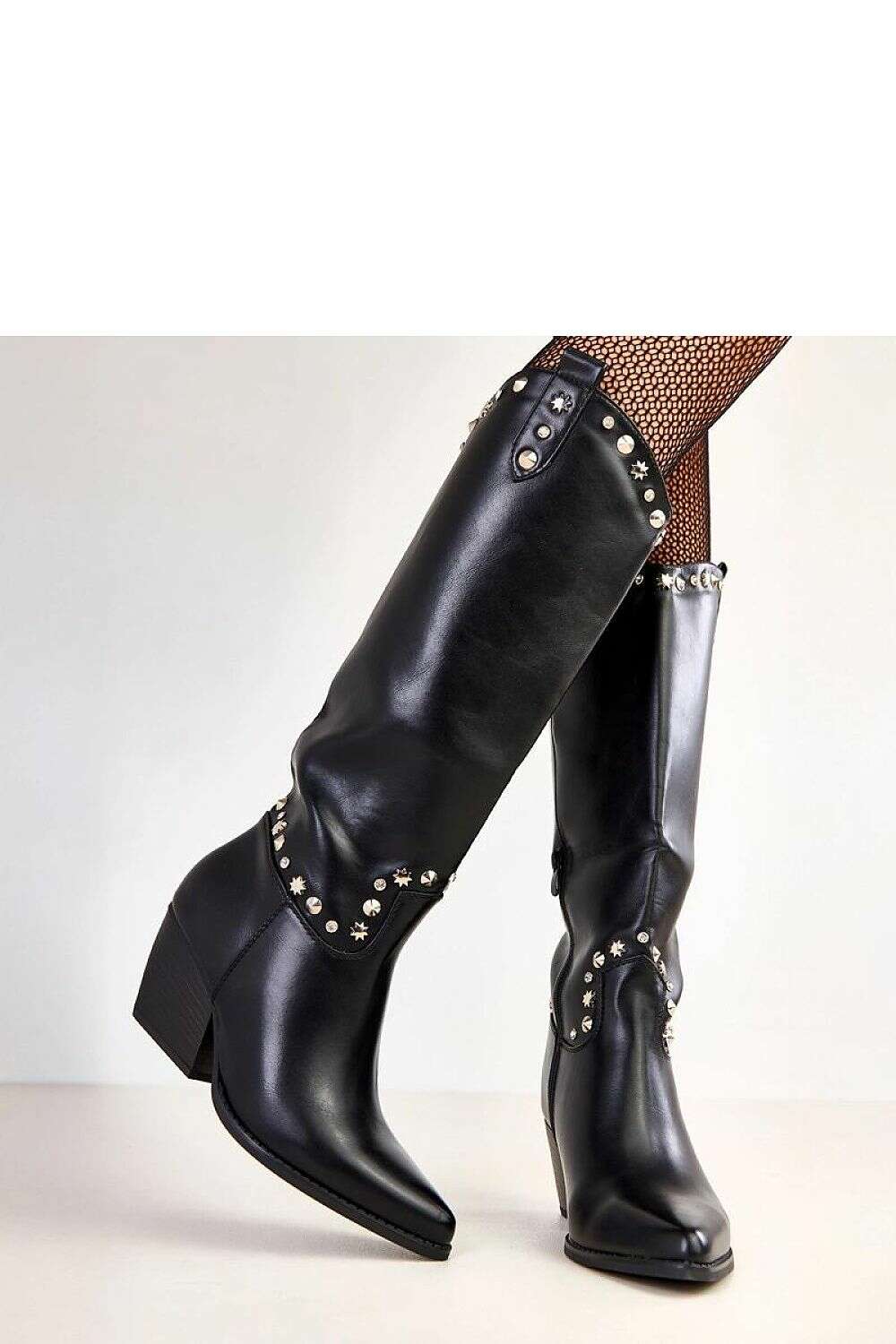 Crafted from high-quality synthetic leather, these boots are elegant and easy to care for. The knee-high shaft (35 cm) beautifully elongates the leg, while a round toe and a stable 7 cm block heel provide all-day comfort. Insulation keeps feet warm on chilly days, and a convenient zipper closure makes dressing quick and easy. Decorative studs add a subtle rock-edge to the western-inspired look, making them a standout addition to your wardrobe. The durable synthetic insole furthers comfort and longevity.