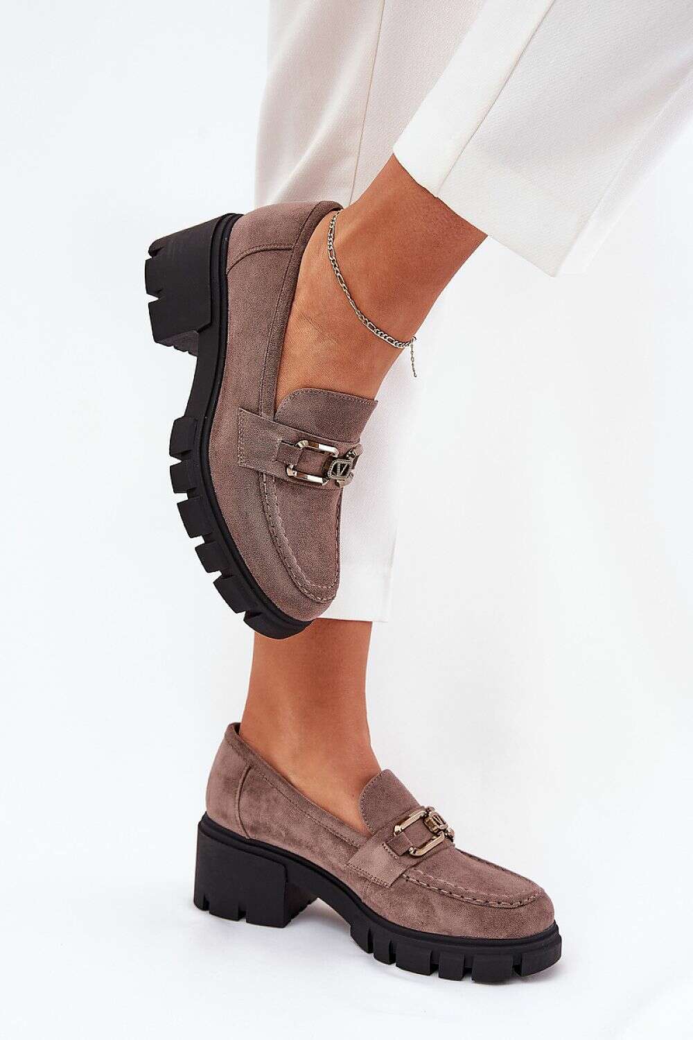 Women's shoes from the Vinceza brand are an elegant proposition for everyday wear. Made of eco suede. Set on a sturdy heel, they provide stability and comfort throughout the day. There is a subtle decoration at the front, adding elegance. The leather, soft insole ensures comfort with every step. Rounded toes. These shoes will work perfectly in both casual and more formal stylings, combining style with functionality.