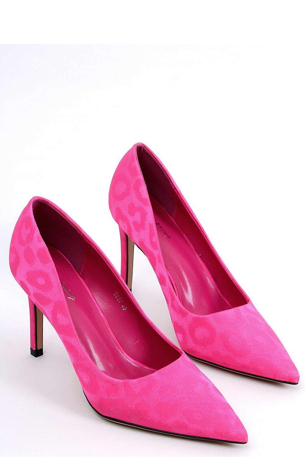 Women's pumps on a stiletto heel with a height of 10 cm. The pattern in spots gives them character - we guarantee that you will not pass by them indifferently : ) Cut with a delicate pointed nose makes the leg looks exceptionally graceful in them. Perfect for special occasions - weddings, balls, proms.... They are made of fabric imitating satin.