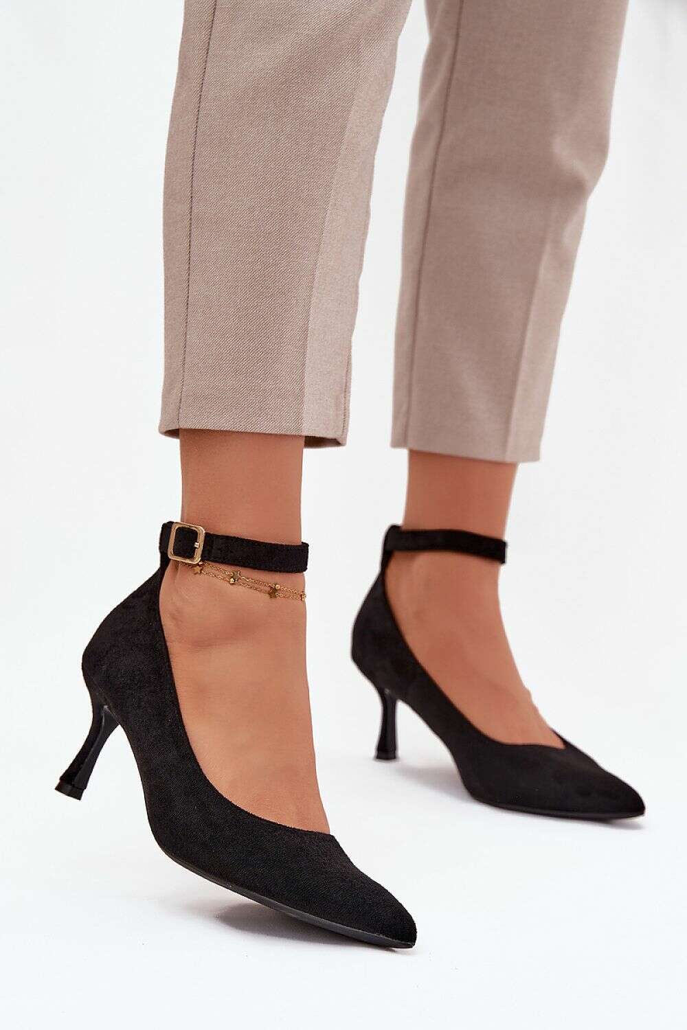 Eco Suede High Heel Pumps with Ankle Strap Buckle – 7cm Pointed Toe